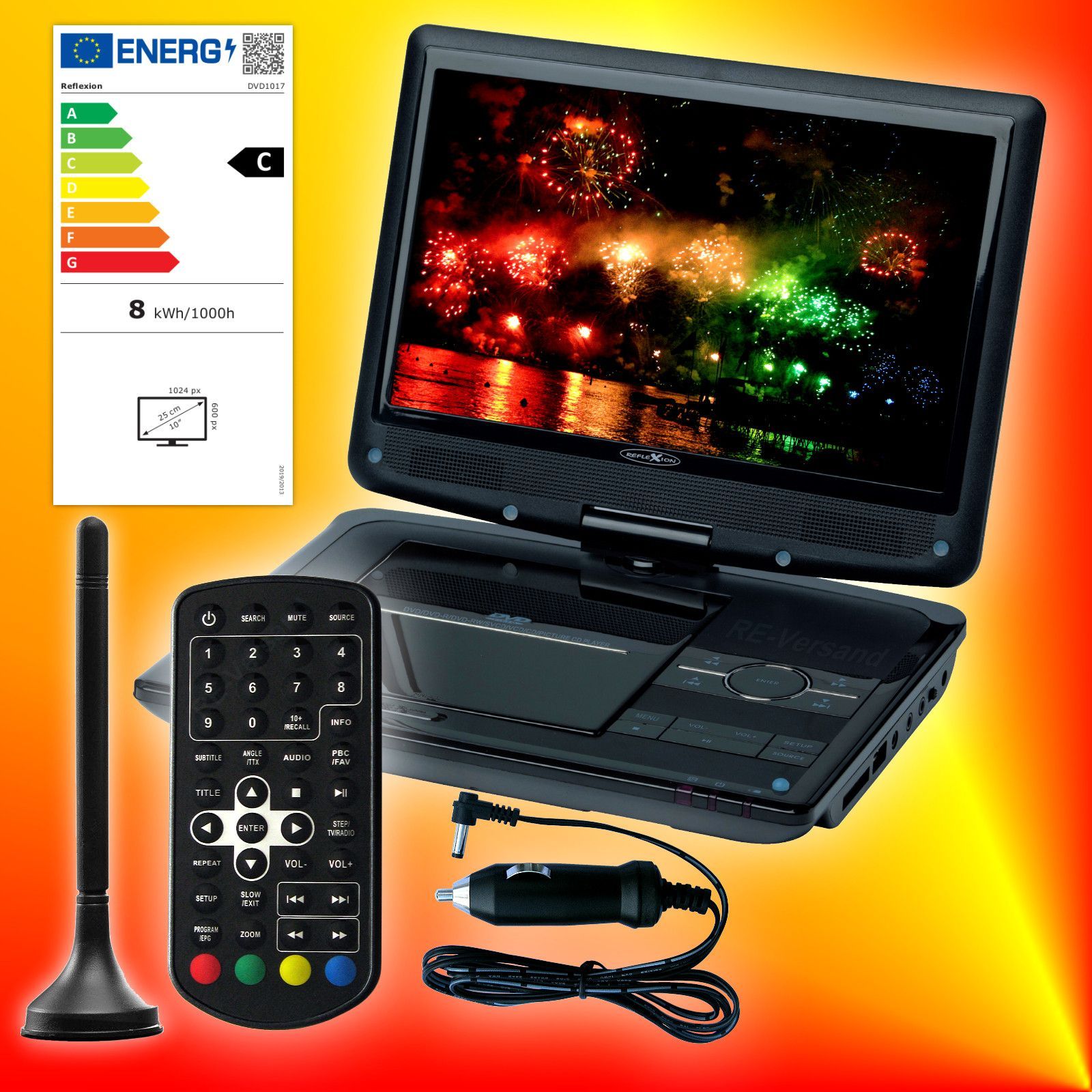 Reflexion Reflexion DVD1017 tragbarer DVB-T2 HD Fernseher mit DVD-Player 12V/230V TV EEK C