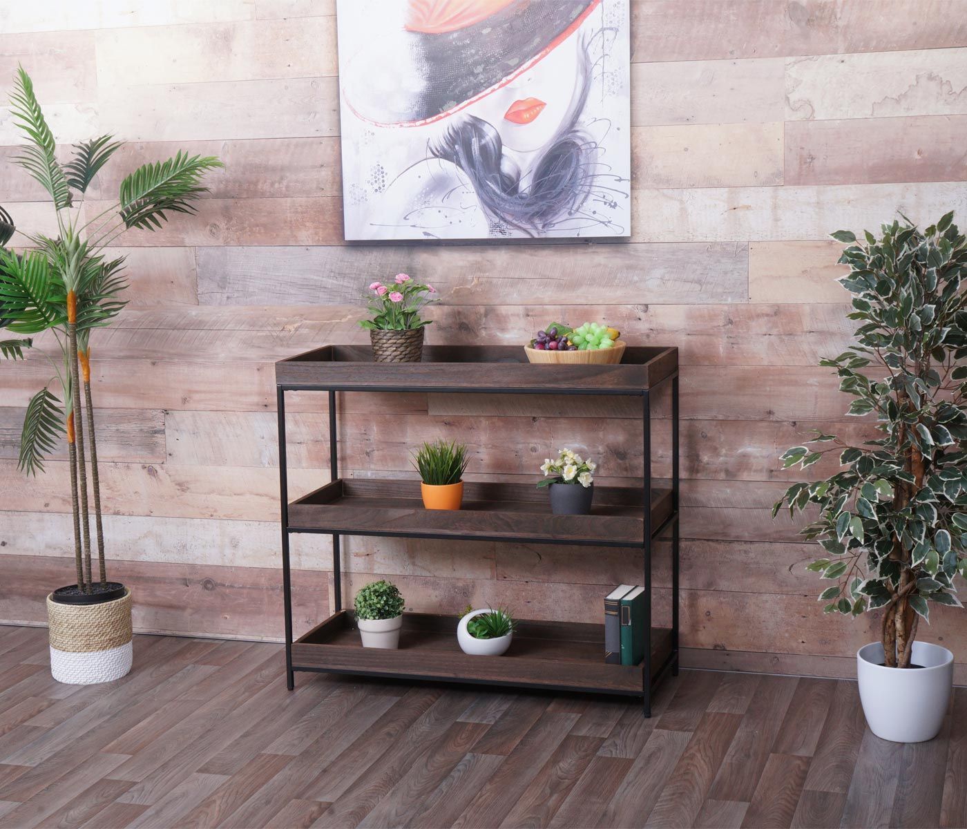 Mendler Regal HWC-K71, Standregal Pflanzregal Bücherregal, Holz Metall 3 Ablagen 90x100x35cm