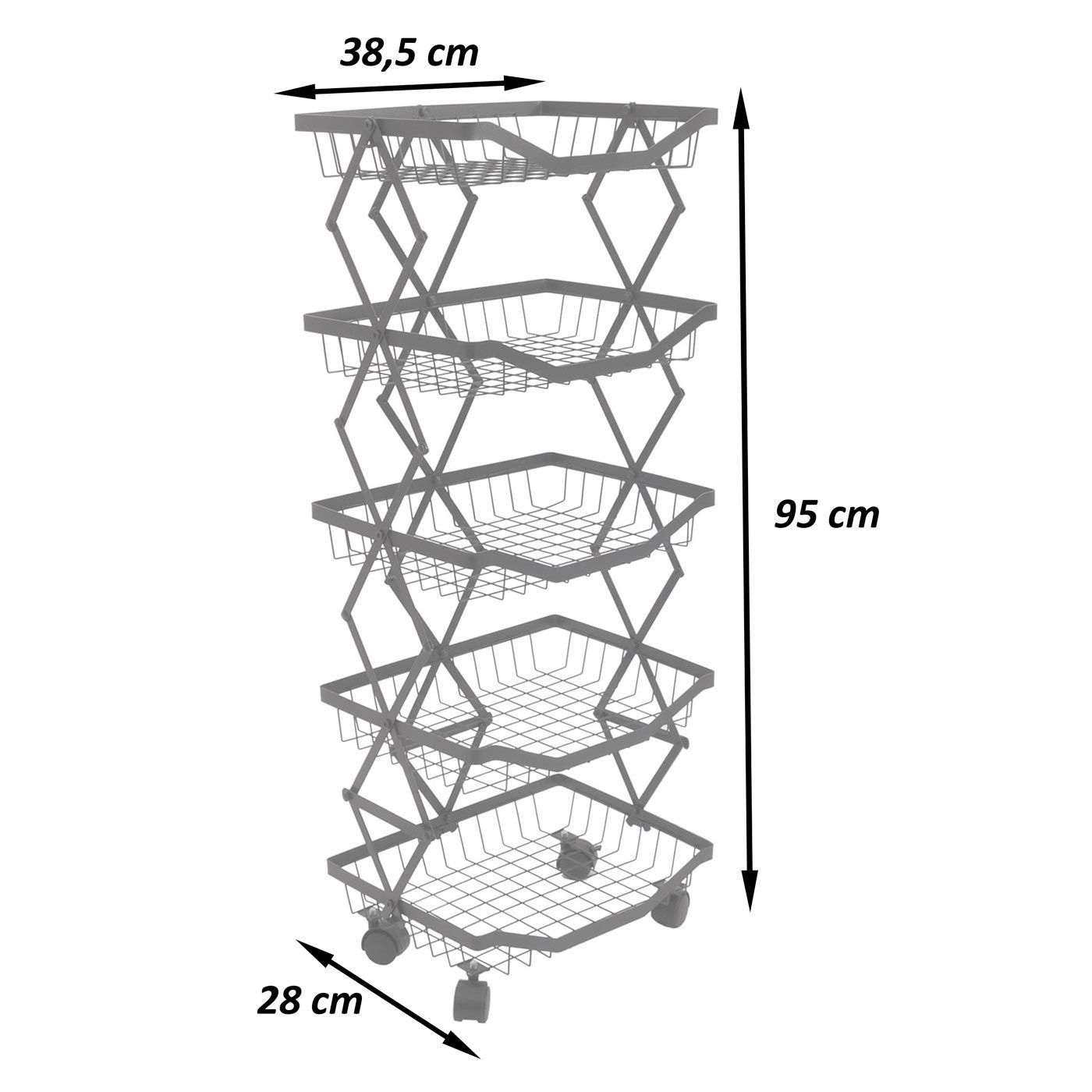 Mendler Regal HWC-N53, Küchenregal Rollregal, Korb faltbar rollbar Eisen 95x39x28cm