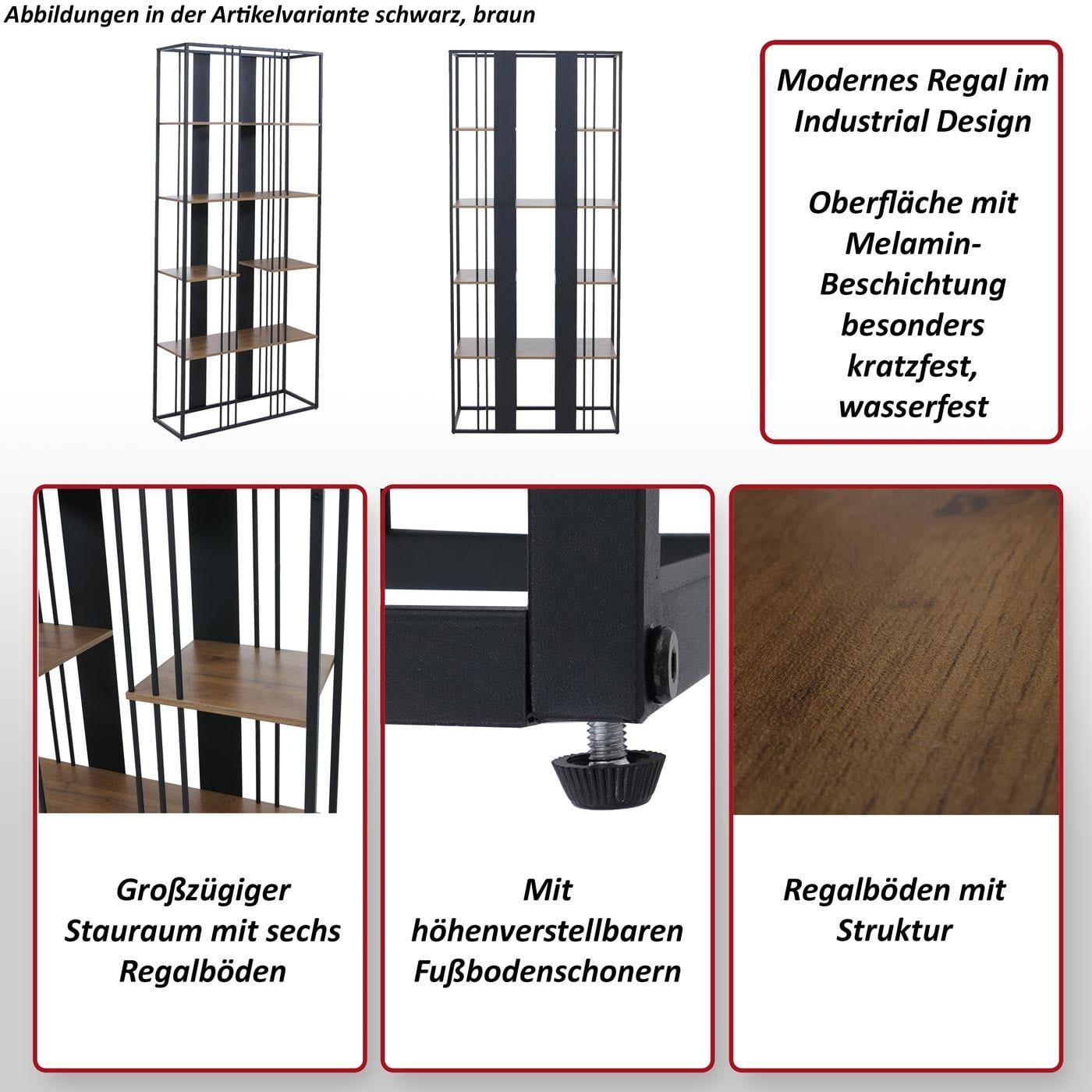 Mendler Regal HWC-P12, Bücherschrank Hochschrank, Industrial Metall MVG 180x80x31cm