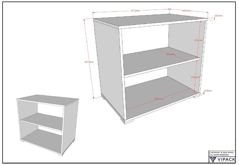 VIPACK Regal offen mit 2 Fächern Standregal Beistellregal Bücherregal Weiß