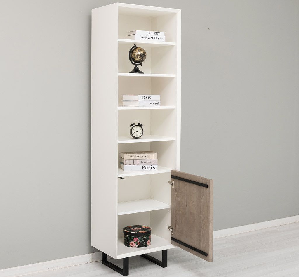 Regalschrank im modernen Skandi-Stil altweiß / braun gebürstet