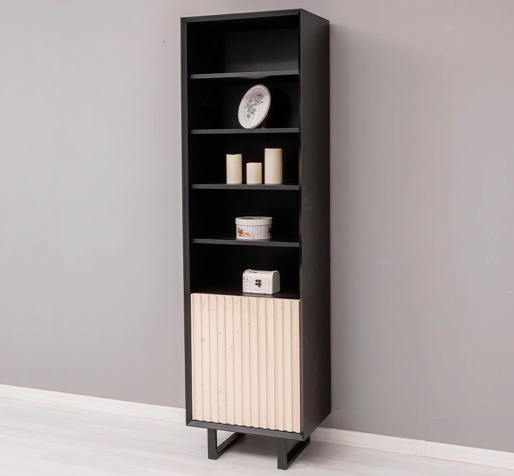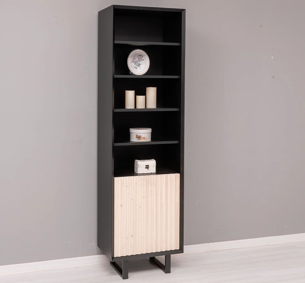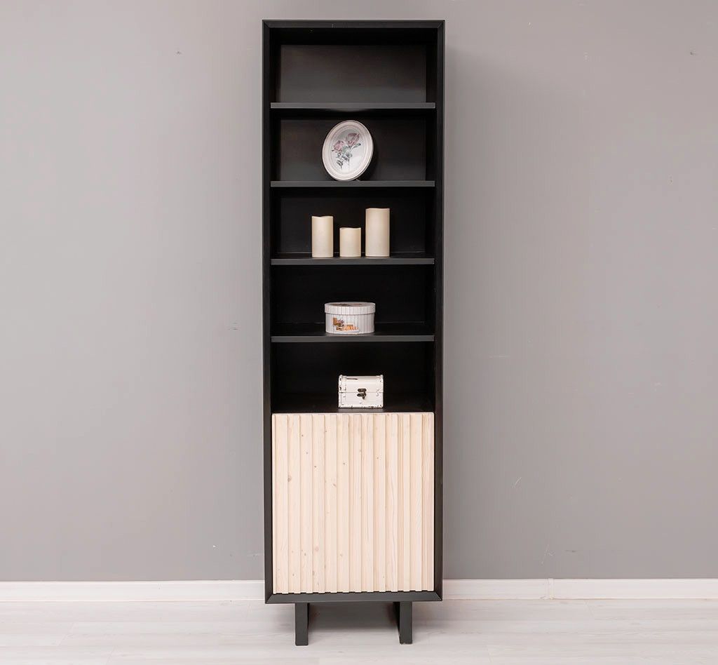 Regalschrank im Skandi-Look Kontrastfarben schwarz / weiß geölt