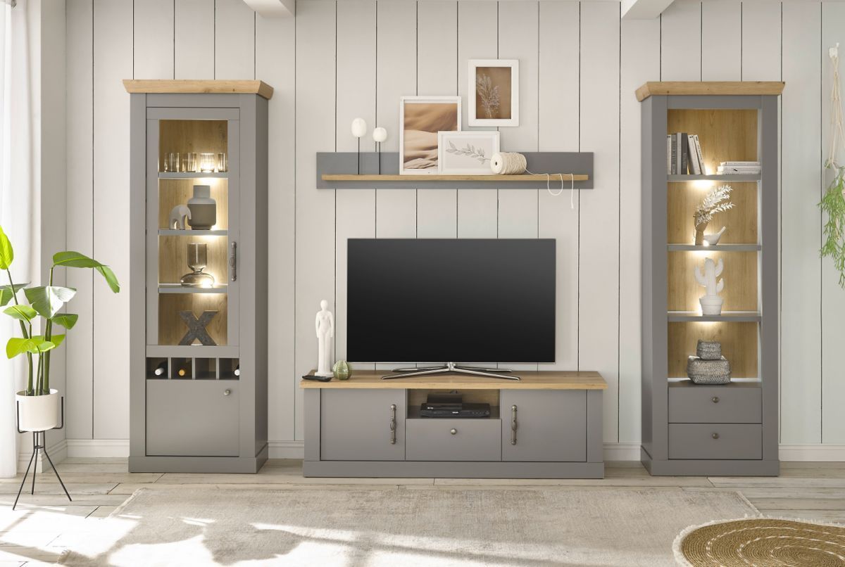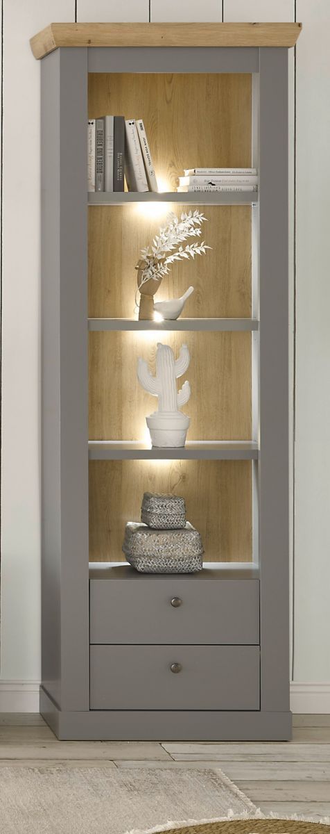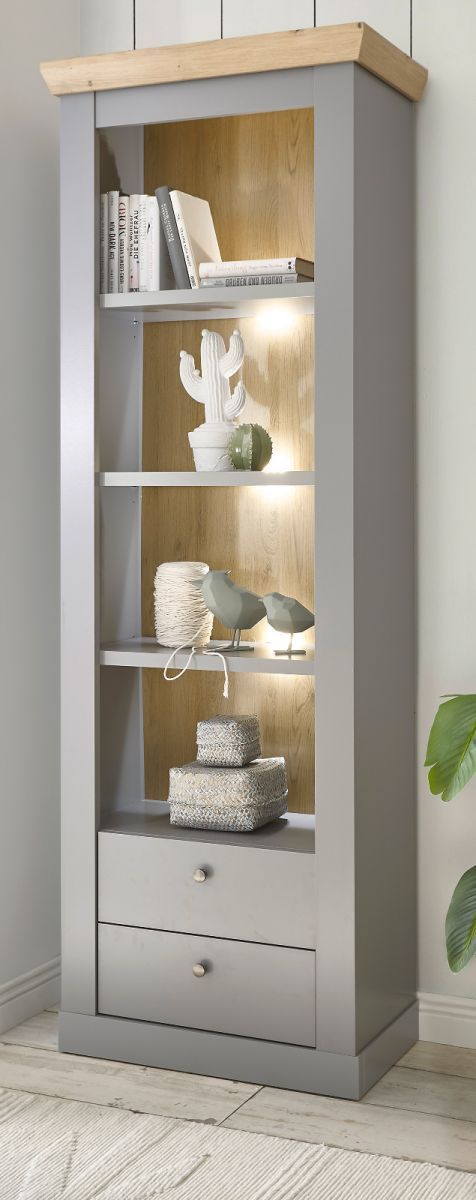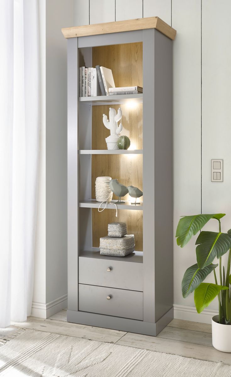 Regalschrank Standregal Bücherregal Geschirr grau Eiche Landhaus Rideau 71 x 201
