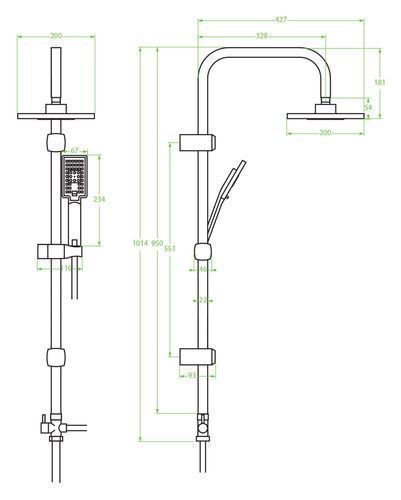 Regendusche set Handbrause Kvadrato Duschsystem in Silber