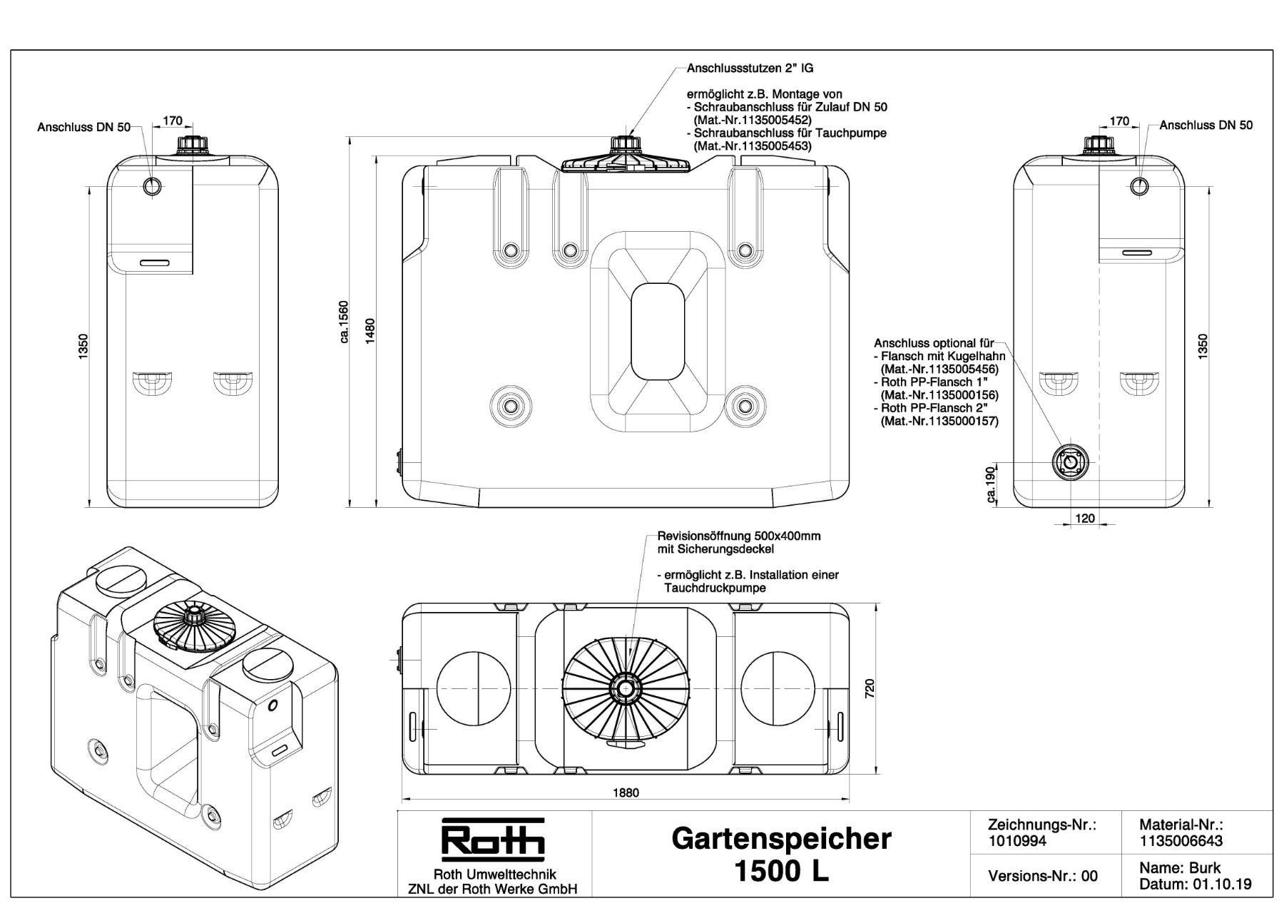Roth Regenspeicher 1500 Liter Regenfass, Regenwasserbehälter,