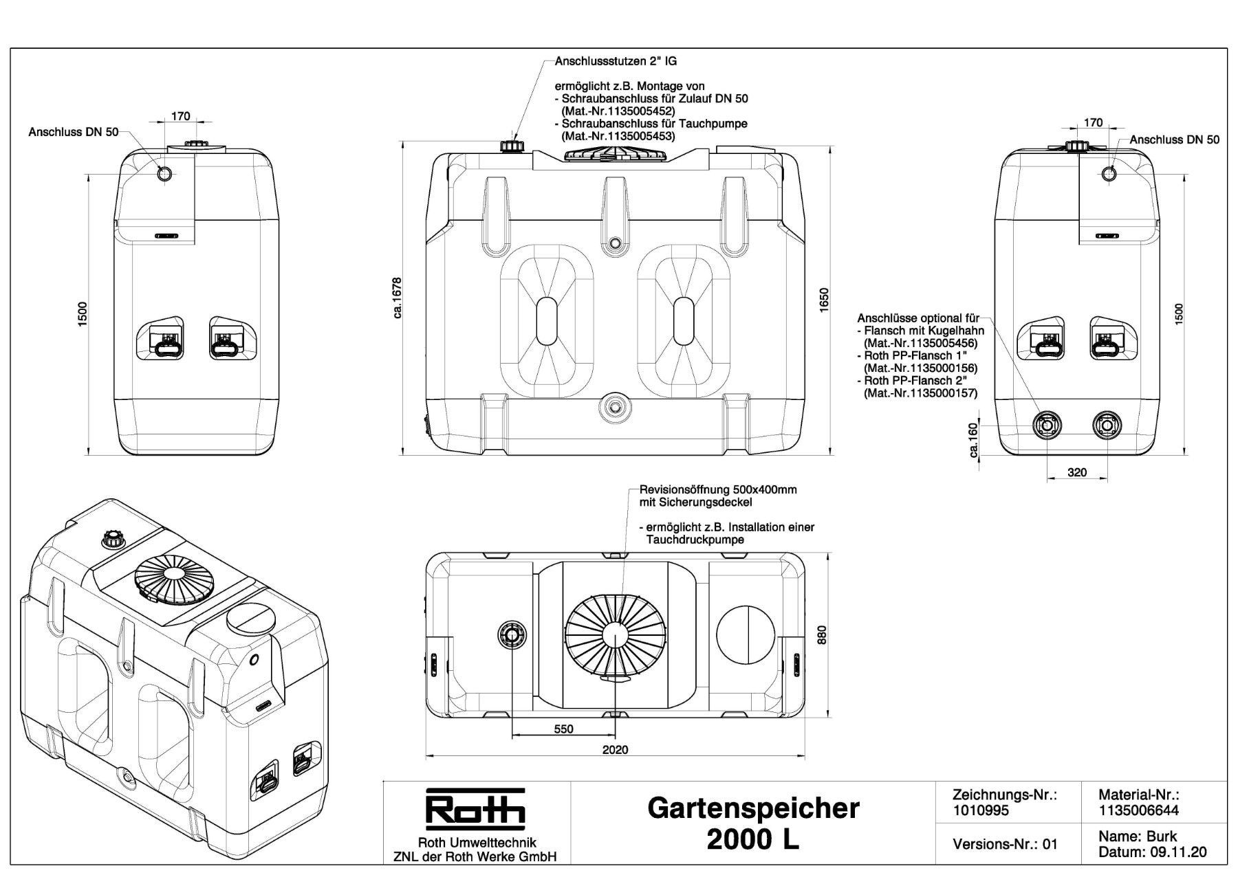Roth Regenspeicher Aktion 2000 Liter mit Farbfehler !!!!! Regenfass, Regenwasserbehälter,