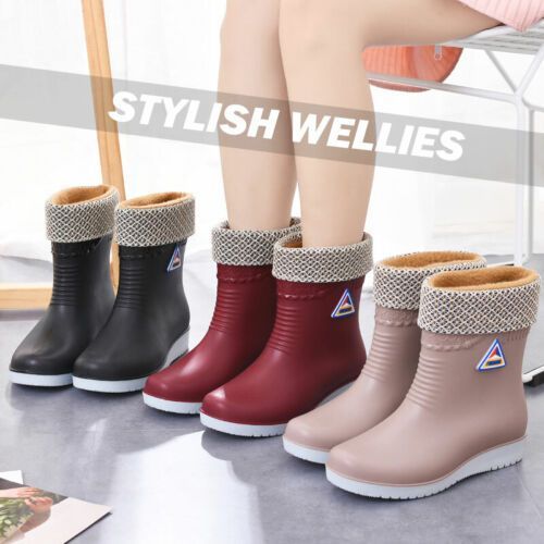 Regenstiefel Damen Gummistiefel warm gefuttert Stiefel Schuhe fur Garten Arbeite