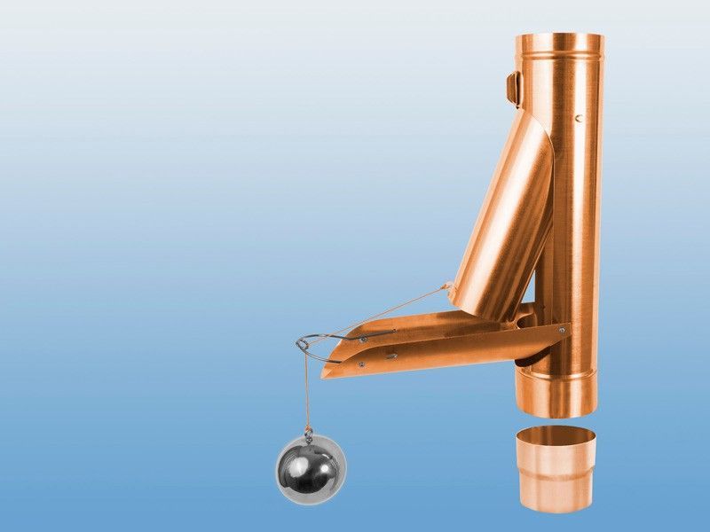 Regenwasserklappe Kupfer automatisch mit Schwimmer DN 76 - 120 inkl. Adapter Im Winterbetrieb kann der Schwimmer einfach entfernt und die Auslaufklappe geschlossen werden. Die automatische Öffnung und Schließung der Klappe spart Zeit und Aufwand bei der Regenwassernutzung. Mit der Regenwasserklappe