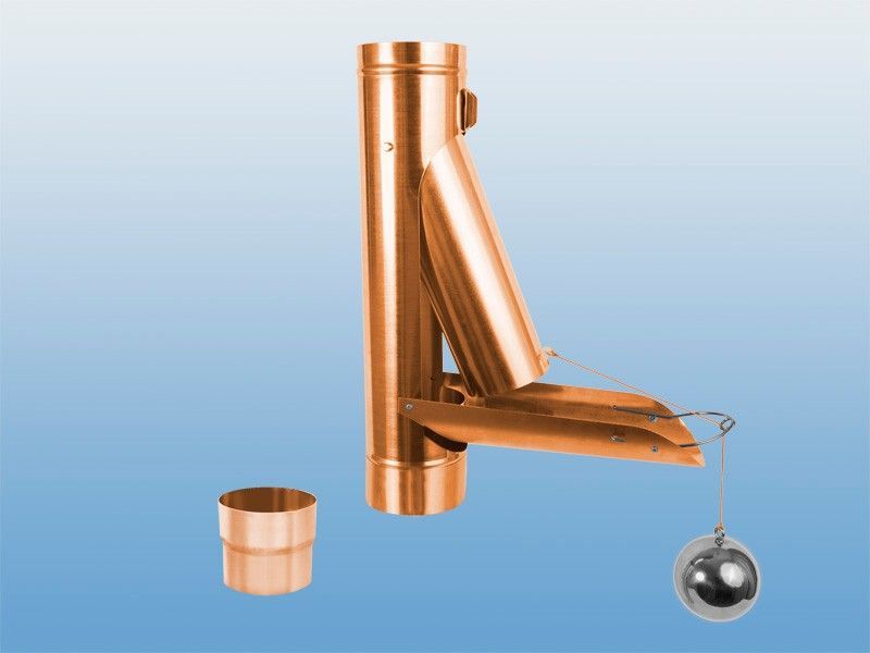 Regenwasserklappe Kupfer automatisch mit Schwimmer DN 76 - 120 inkl. Adapter Im Winterbetrieb kann der Schwimmer einfach entfernt und die Auslaufklappe geschlossen werden. Die automatische Öffnung und Schließung der Klappe spart Zeit und Aufwand bei der Regenwassernutzung. Mit der Regenwasserklappe