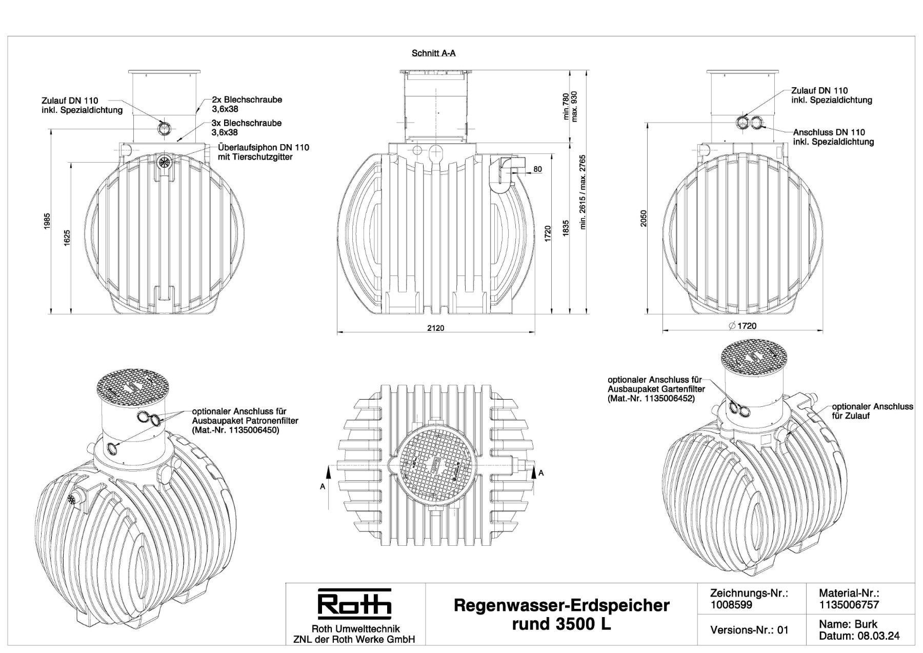 Regenwassertank 3500 Liter Basis, Regentank, Zisterne befahrbar