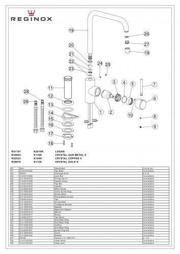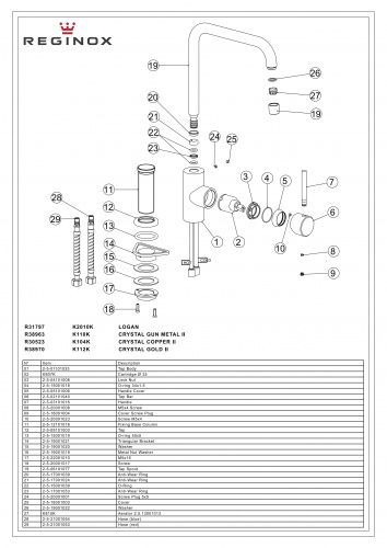 Reginox Reginox Crystal Copper II Einhandmischer Spülbecken Armatur Schwenkauslauf Edelstahl