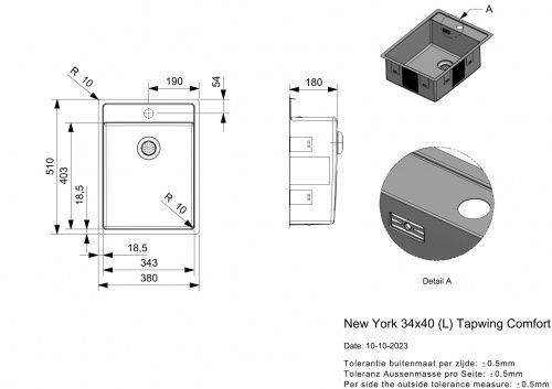 • Reginox NEW YORK 34x40 + 18x40 (L) Edelstahl Einbauspüle