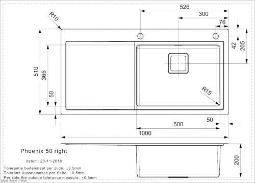Reginox Reginox Spüle Phoenix 50 mit Armaturenbank u. Becken rechts, 1000x510mm
