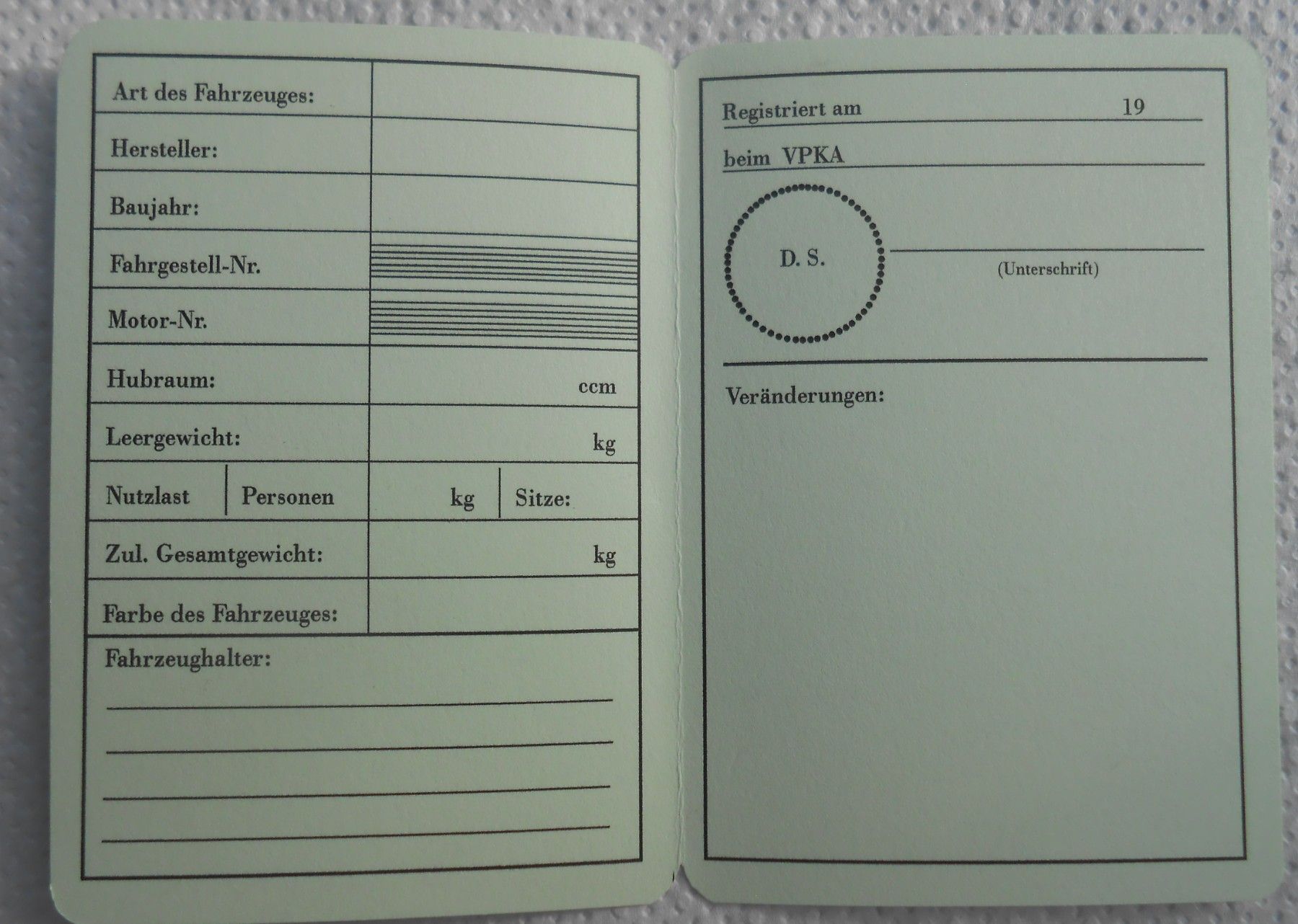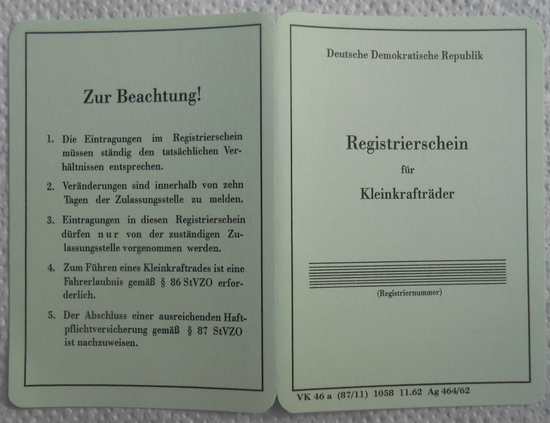 Registrierschein für Kleinkrafträder, Simson, DDR, Oldtimer