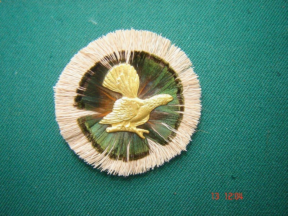. Hutschmuck , Hutfeder klassischer Hutschmuck für Trachtenhut Vereinshut , Schützenhut oder auch für den Wanderhut kleines Rehradl aus Rehhaaren goldener Spielhahn auf grünen Federn mit einer stabilen Broschierung und Nadel zum Anstecken das Rehradl hat einen Durchmesser von ca 4,5 cm Natürlich wer