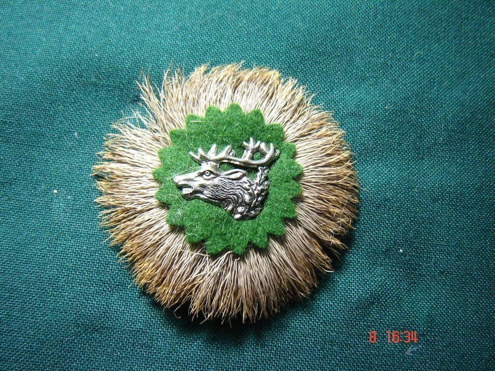 Rehradl bayrische Trachtenhut Hutfeder Hutschmuck mit Hirschkopf Hutschmuck N
