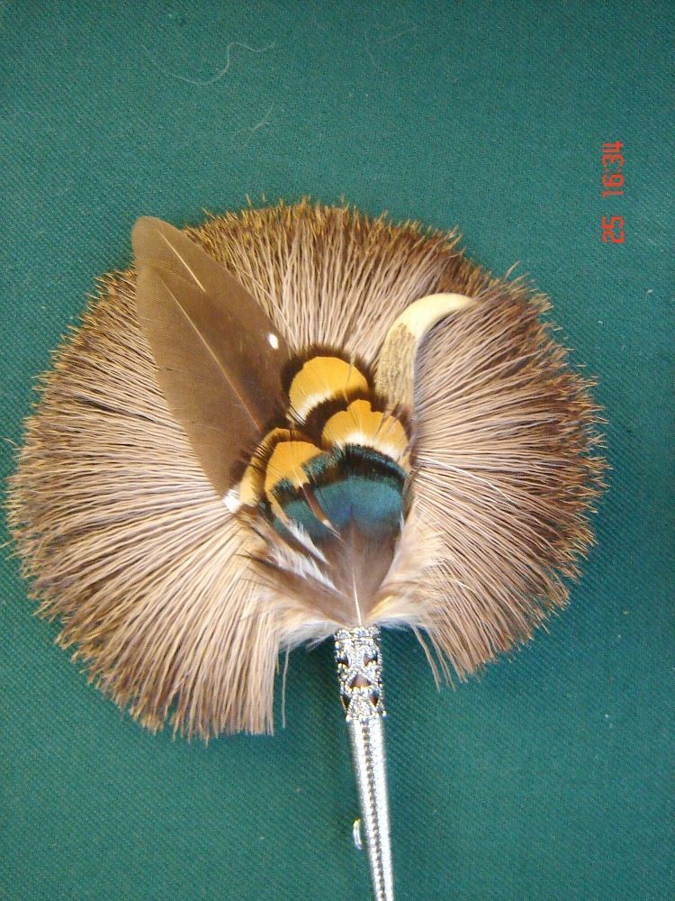 . Hutschmuck , Hutfeder die Geschenkidee für den Hutträger klassischer Hutschmuck für Trachtenhut Vereinshut , Schützenhut oder auch für den Wanderhut Herrenhut Federgesteck mit Hülse Rehradl aus Rehhaaren Durchmesser ca 8,5cm filigraner Halter mit Nadel zum Anstecken Gesamthöhe insgesamt ca 11 cm N
