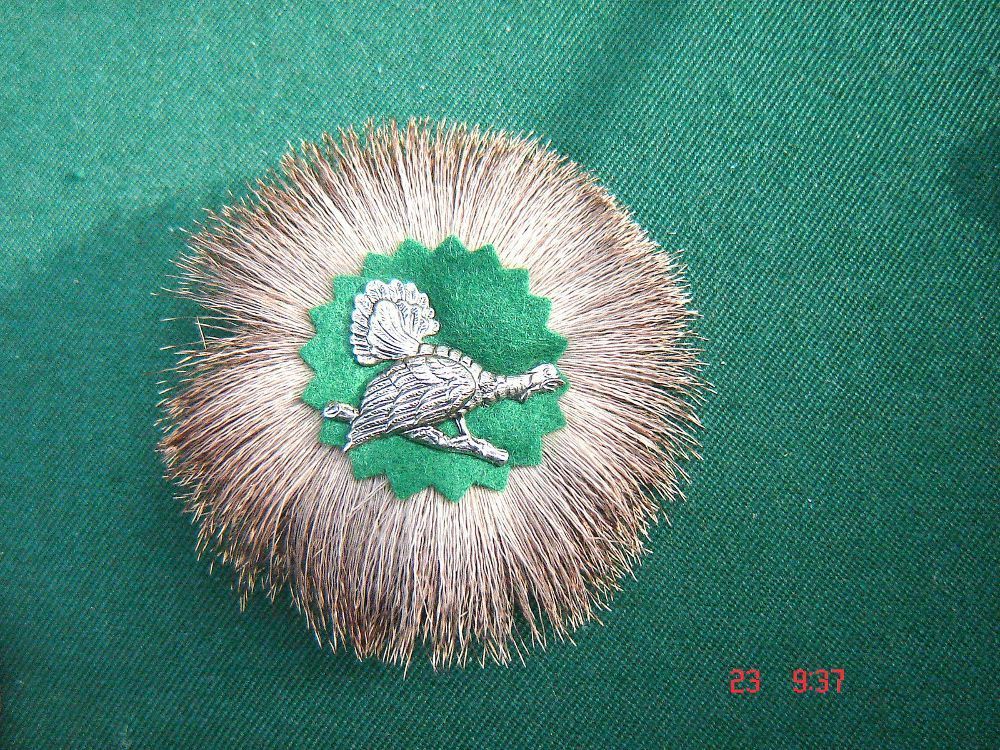 . Hutschmuck , Hutfeder klassischer Hutschmuck für Trachtenhut Vereinshut , Schützenhut oder auch für den Wanderhut Rehradl aus Rehhaaren mit einem schön ausgearbeiteten Auerhahn auf grünem Filz mit einer stabilen Broschierung und Nadel zum Anstecken das Rehradl hat einen Durchmesser von ca 6,5 cm N