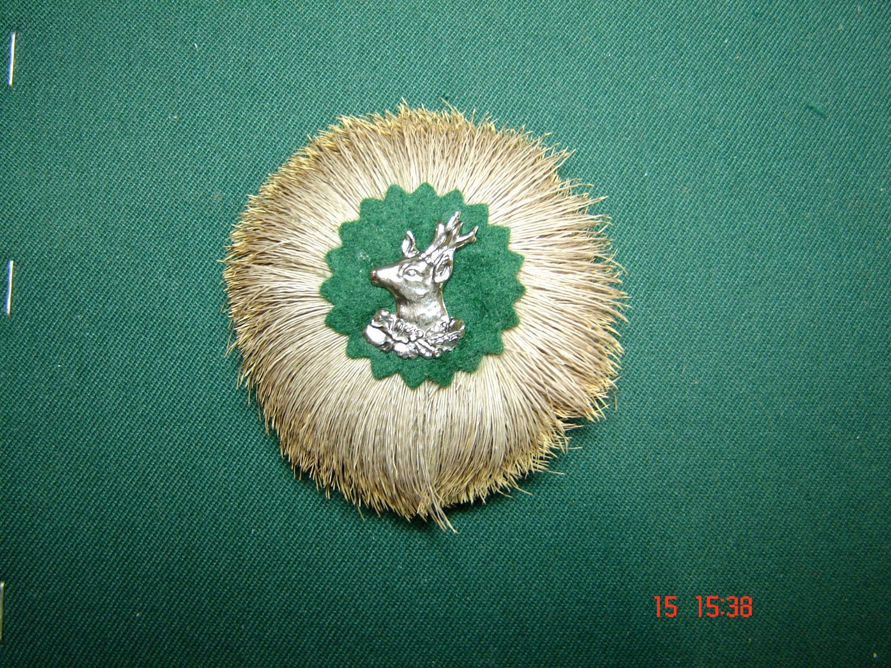. Hutschmuck , Hutfeder klassischer Hutschmuck für Trachtenhut Vereinshut , Schützenhut Jagdhut oder auch für den Wanderhut Rehradl aus Rehhaaren mit einem schön ausgearbeiteten Rehbockkopf auf grünem Filz mit einer stabilen Broschierung und Nadel zum Anstecken das Rehradl hat einen Durchmesser von