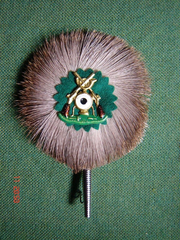 . Hutschmuck , Hutfeder klassischer Hutschmuck für Trachtenhut Vereinshut , Schützenhut oder auch für den Wanderhut Rehradl aus Rehhaaren mit einer handbemalten Schützenscheibe auf grünem Filz mit filigranem Halter und Nadel zum Anstecken das Rehradl hat einen Durchmesser von ca 8 cm Natürlich werde