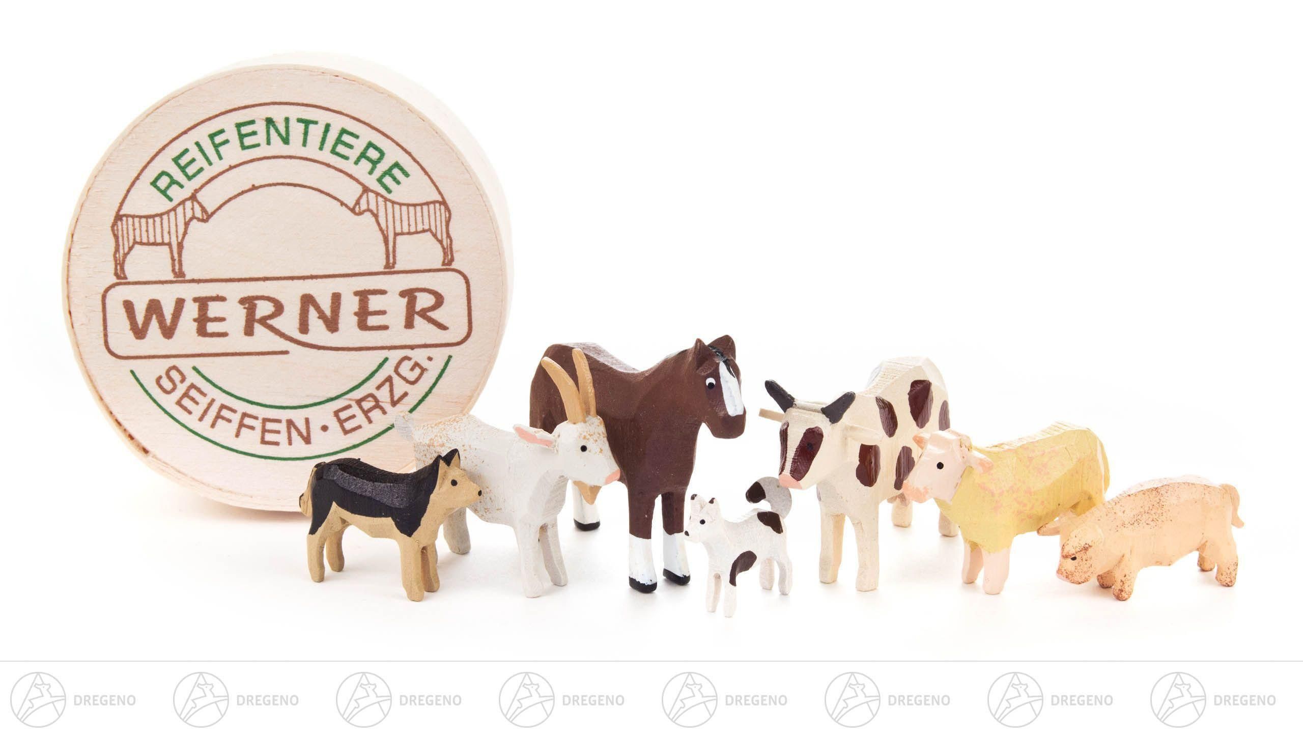 Reifentier Haustiere in Spandose H=ca 4,5 cm NEU Erzgebirge Reifenvieh Holztier