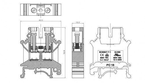 Reihenklemme 16mm2 Schraubklemme Durchgangsklemme Grau VDE UL 3374