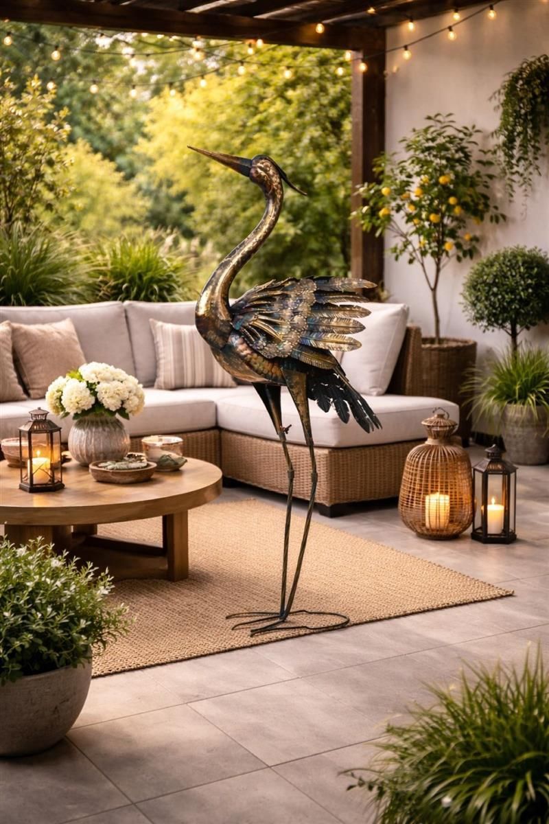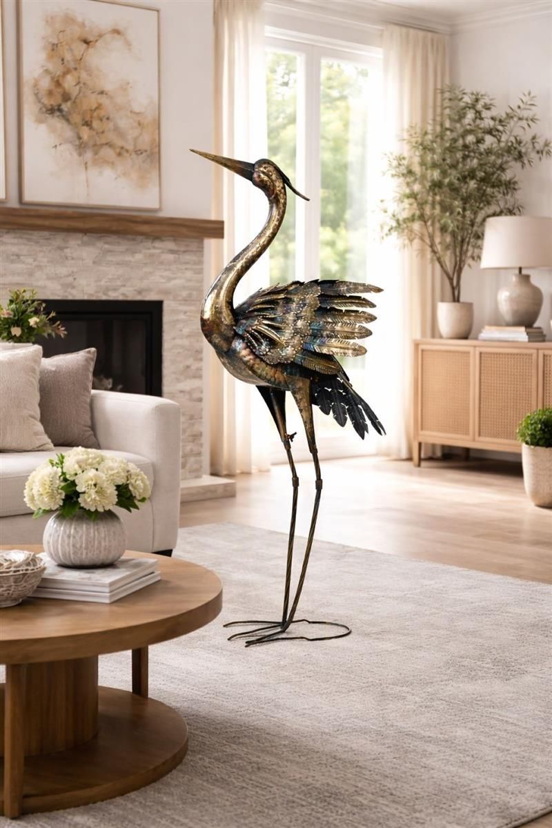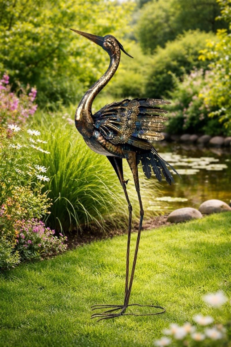 Reiher Metall Vogelfigur 112cm stehend Dekofigur Dekoration Haus Hof Garten