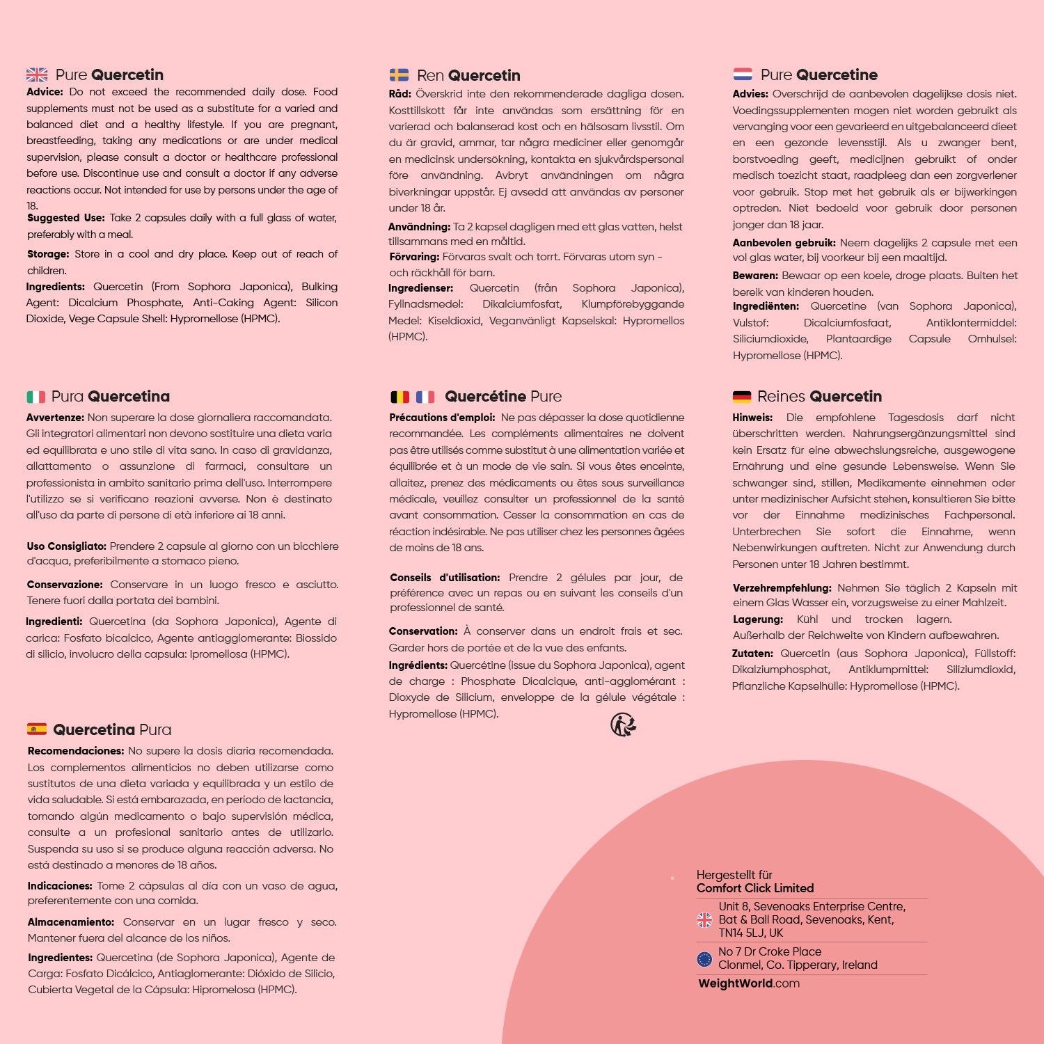 Reines Quercetin 1000mg pro Portion - 180 vegane Kapseln - 3 Monate Vorrat