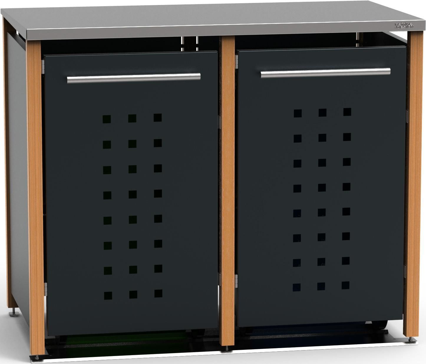 reinkeDESIGN | Müllbox 2x120L | Typ L | Pultdach, Lärchenhol Anthrazit Aluminium
