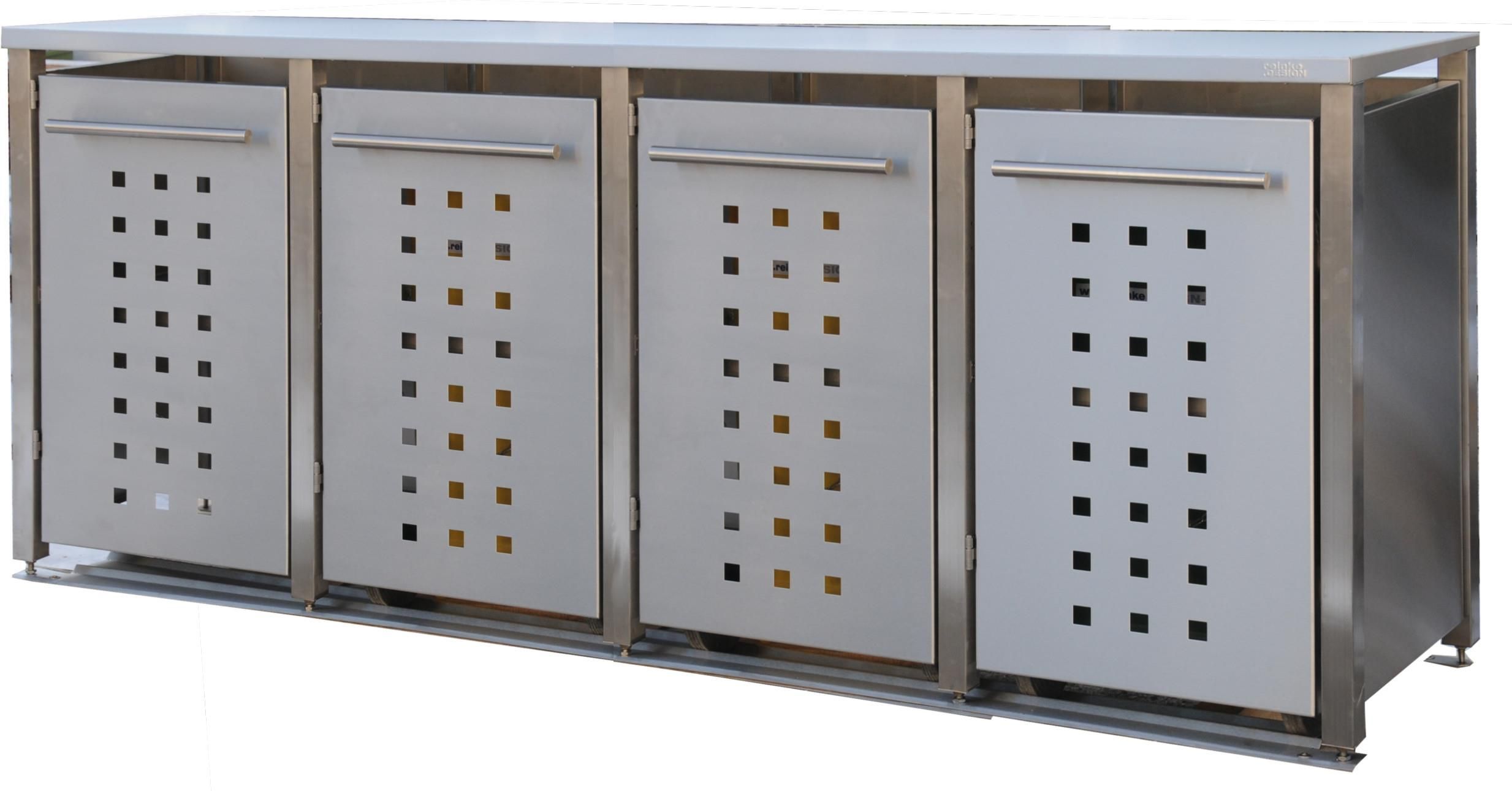 reinkeDESIGN | Müllbox 4x240L | Typ M | Flachdach, Pfosten i Pultdach - Edelstahl