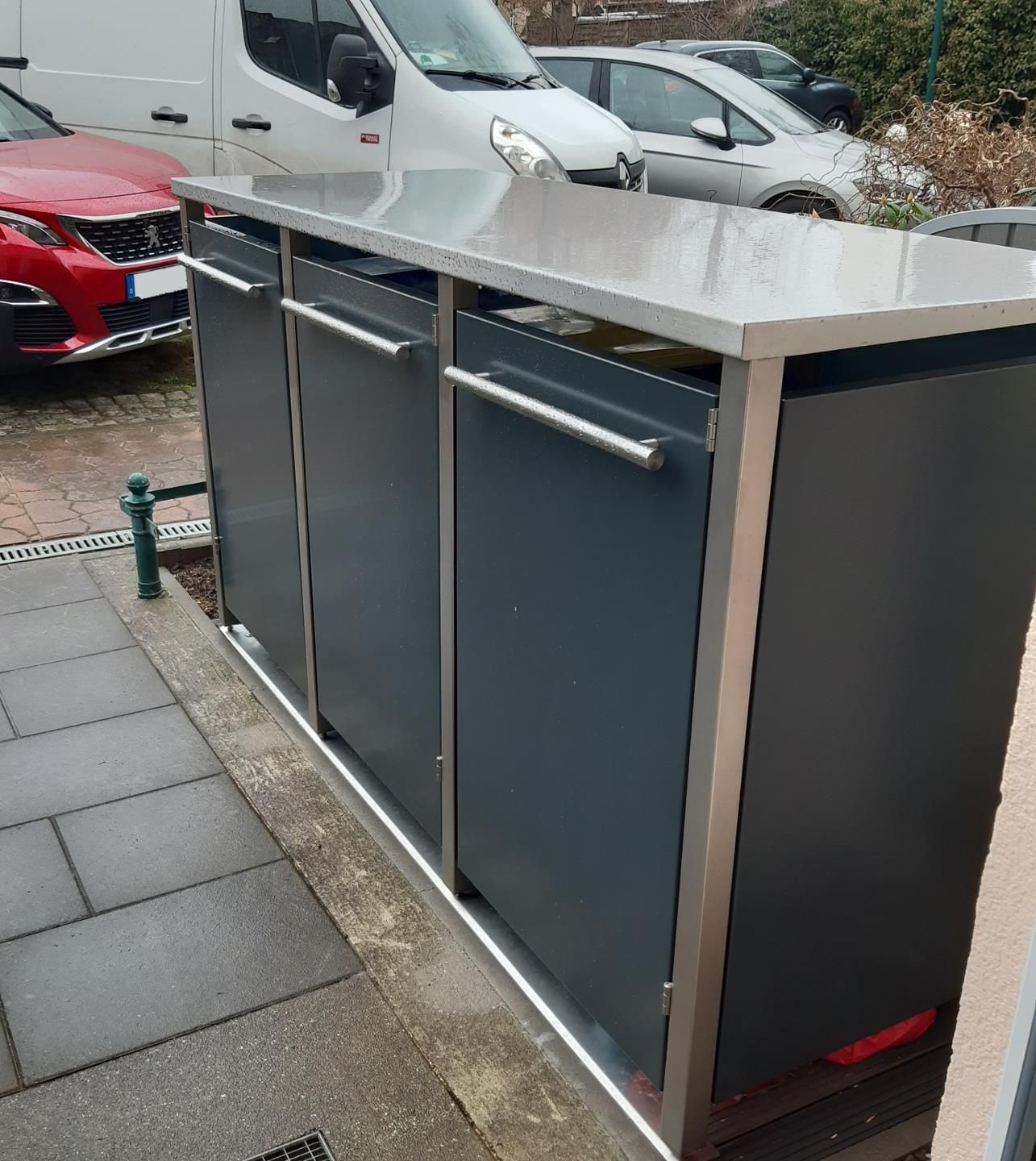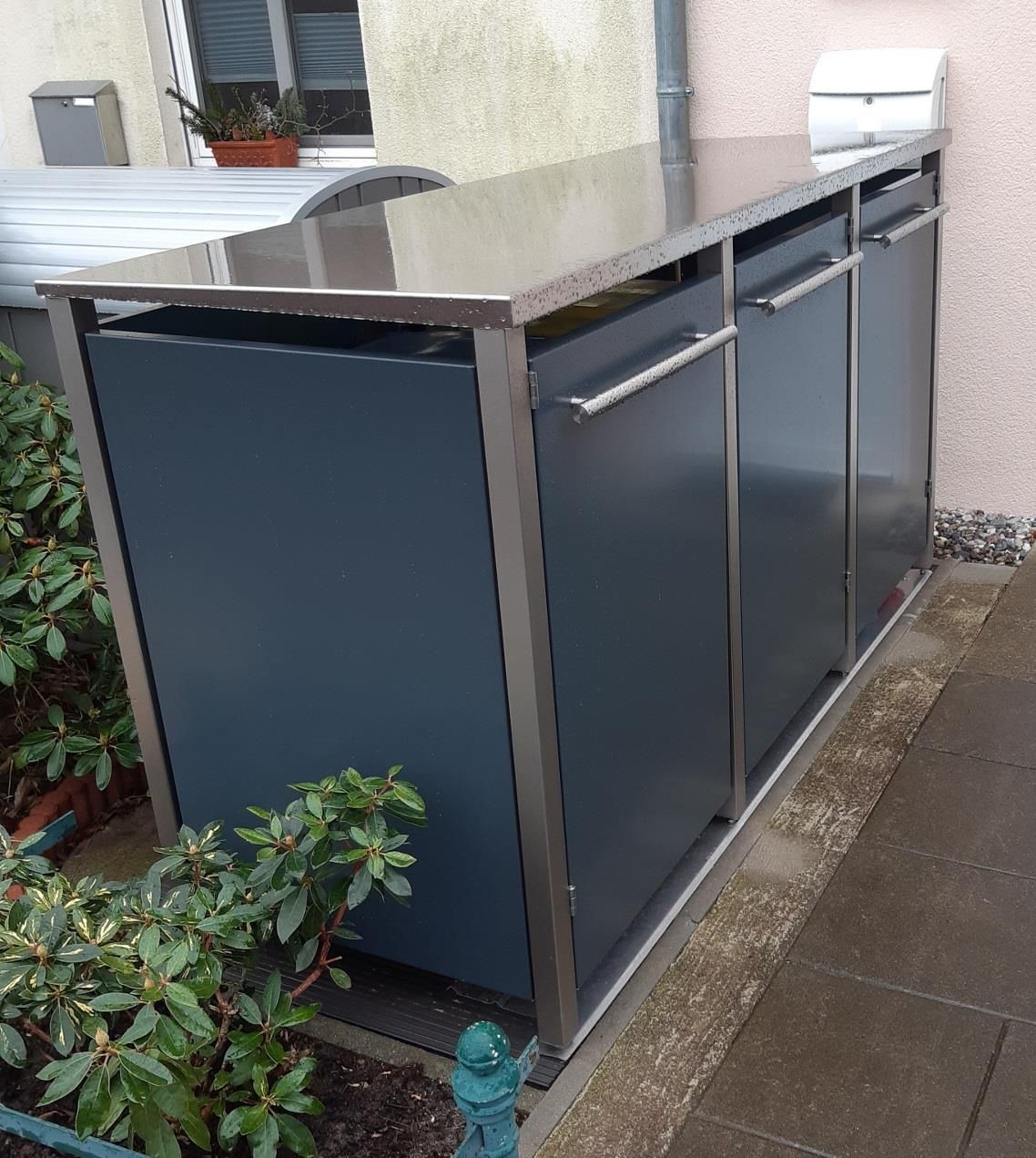 reinkeDESIGN | Mülltonnen-Box 3er 120L | Typ M | Flachdach, Pultdach - 3 x 120l