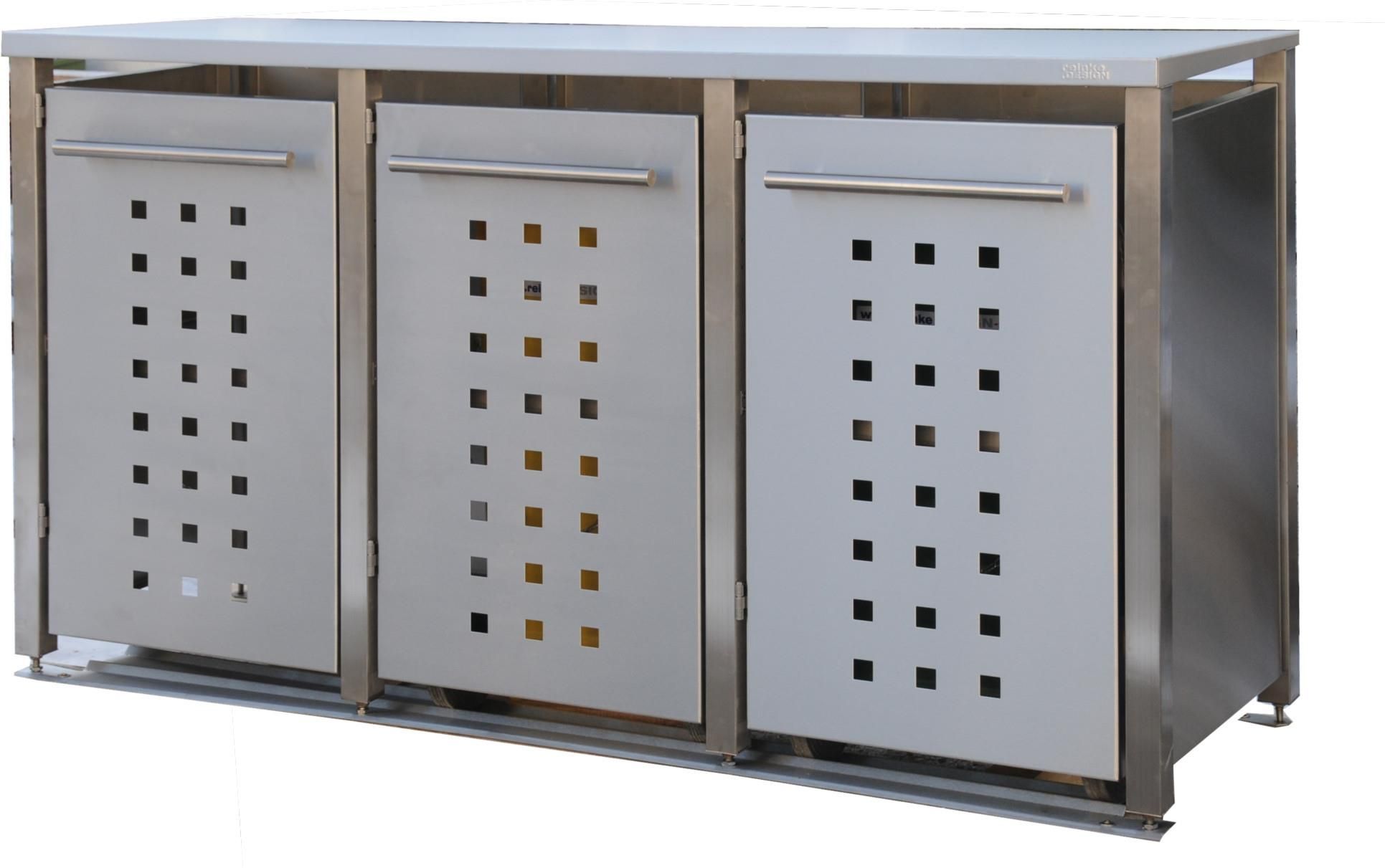 reinkeDESIGN | Mülltonnen-Haus 3x120L | Typ M | Pultdach, Ed Pultdach - Edelstahl