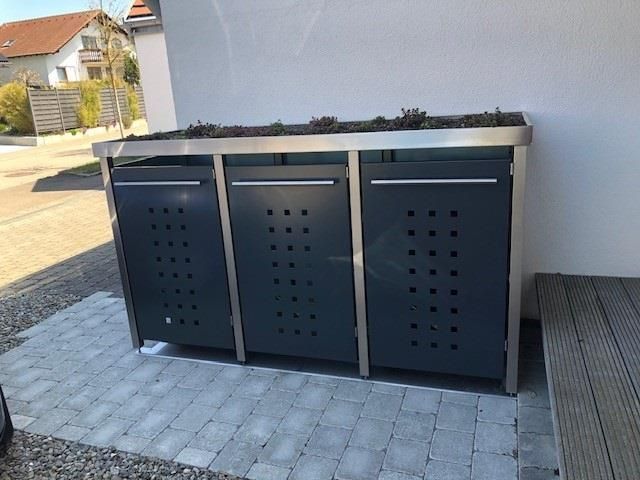 reinkeDESIGN | Mülltonnen-Haus 3x240L | Typ M | mit Gründach Pflanzenwanne - Anth