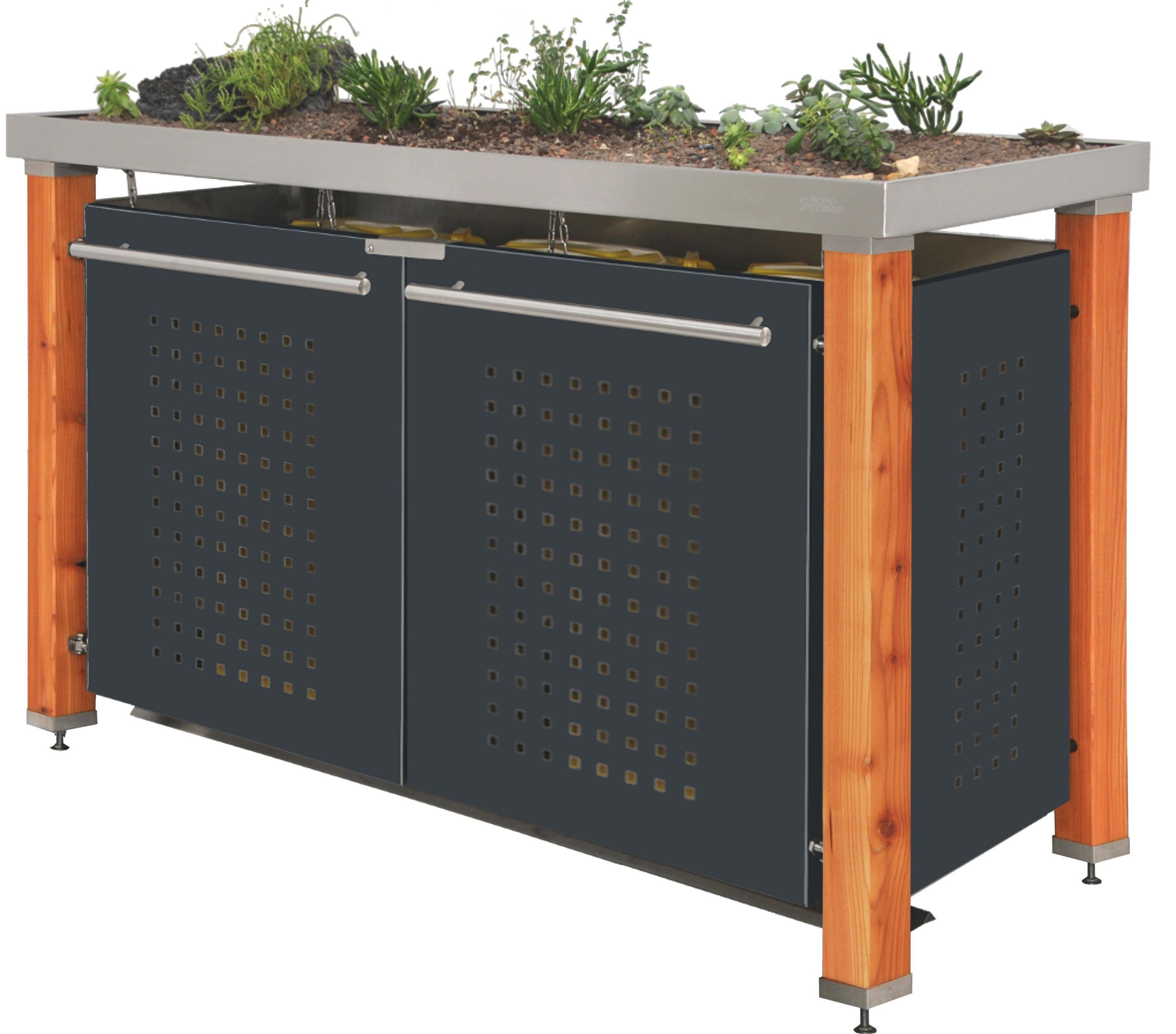 reinkeDESIGN | Mülltonnen-Verkleidung dreier 3x240L | Typ H F-Design - Pflanzenw