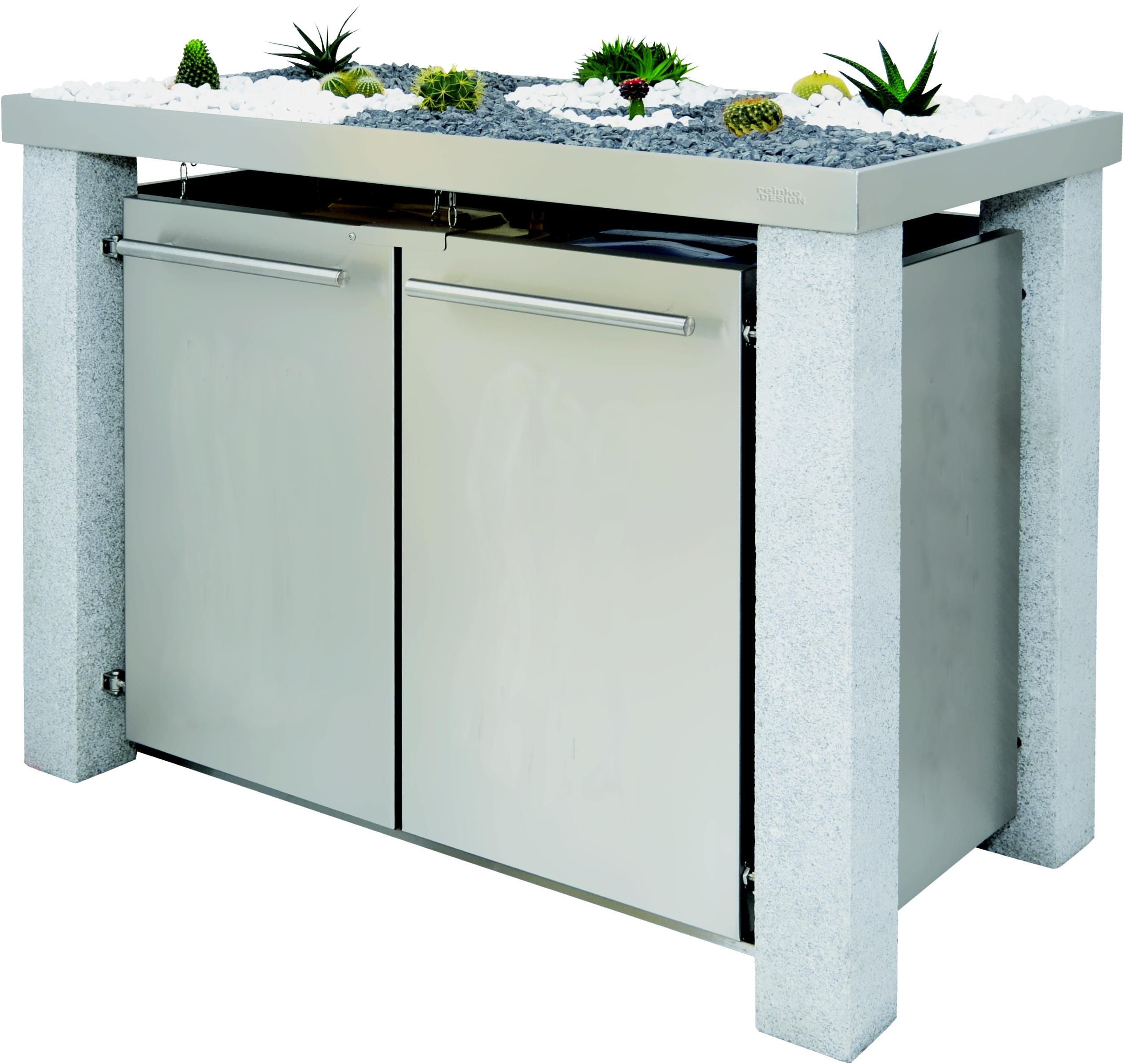 reinkeDESIGN | Mülltonnenbox 2x240L | Typ S | Begrünbar, aus Edelstahl - Pflanzen
