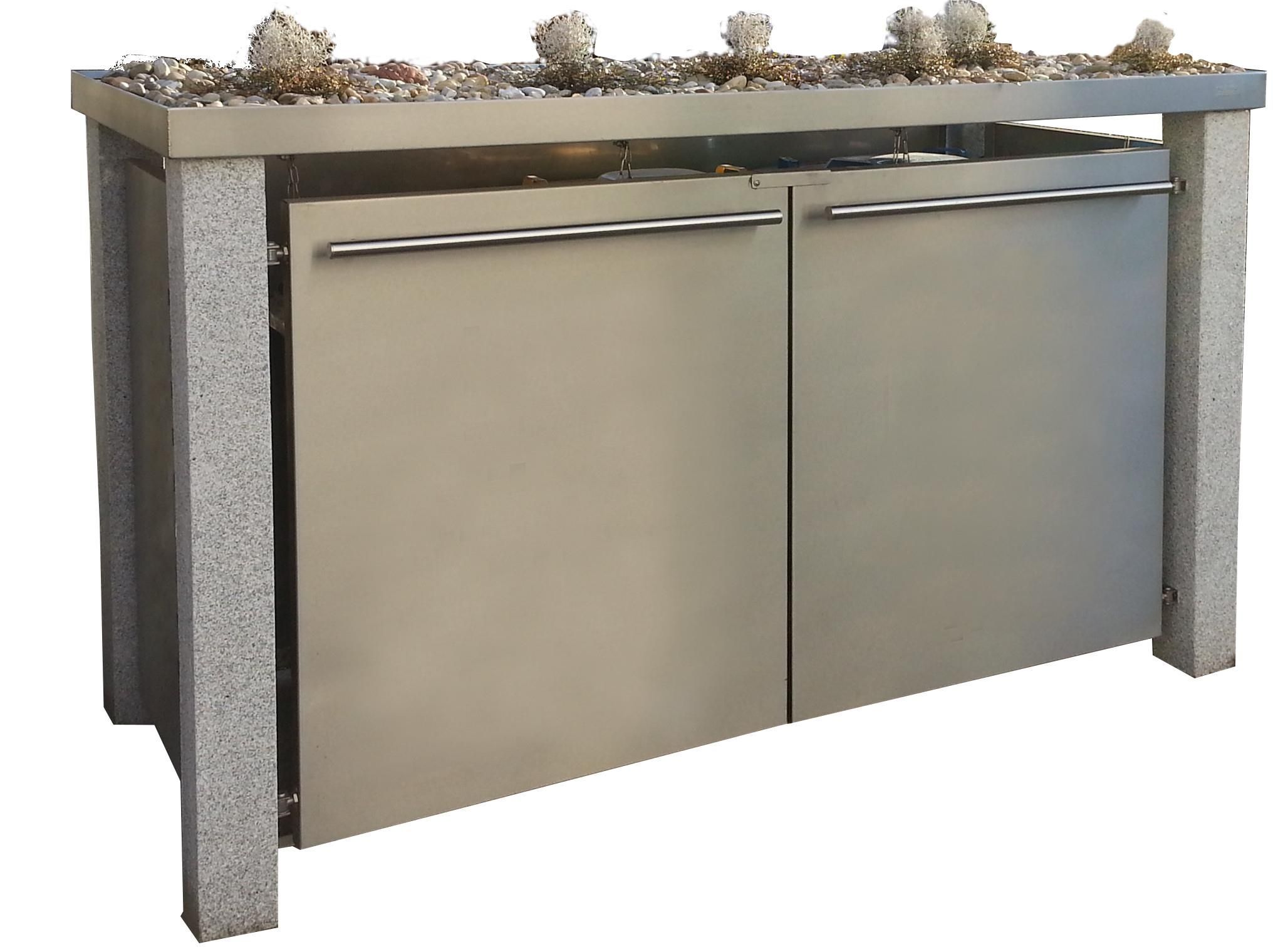 reinkeDESIGN | Mülltonnenbox 3er 240L | Typ S | mit Grün-Dac Edelstahl - Pflanzen