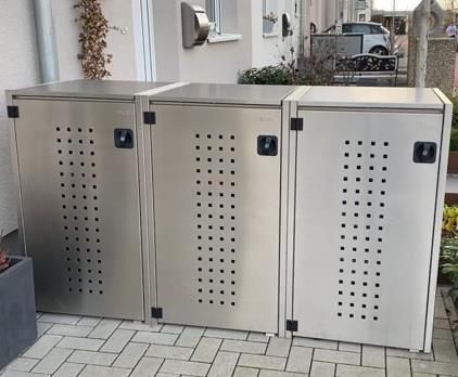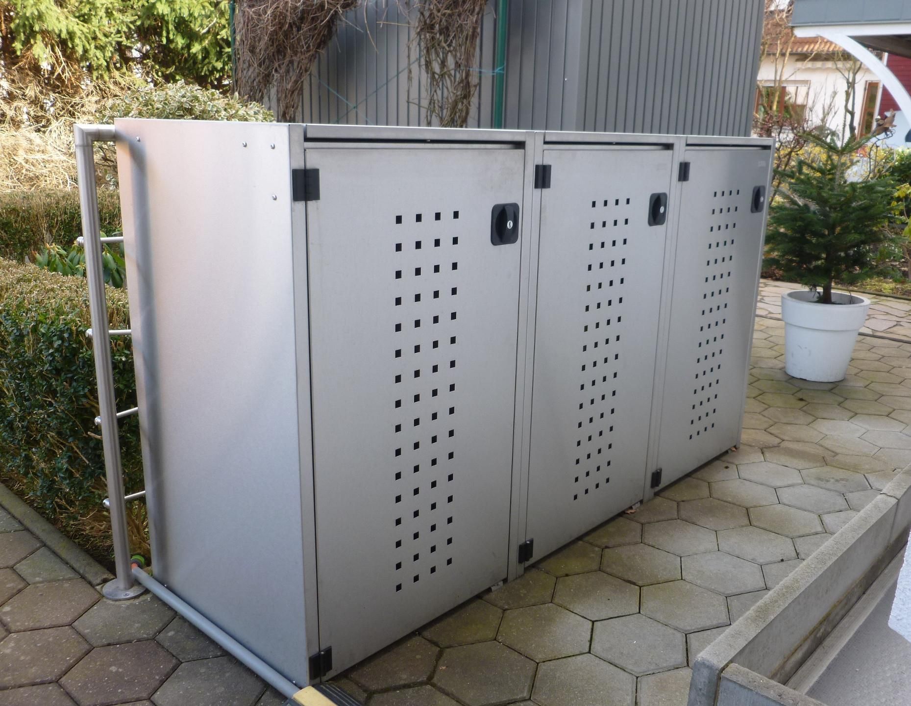 reinkeDESIGN | Mülltonnenhaus dreier 3x120L | Typ X | mit Ki Edelstahl - 3 x 120l
