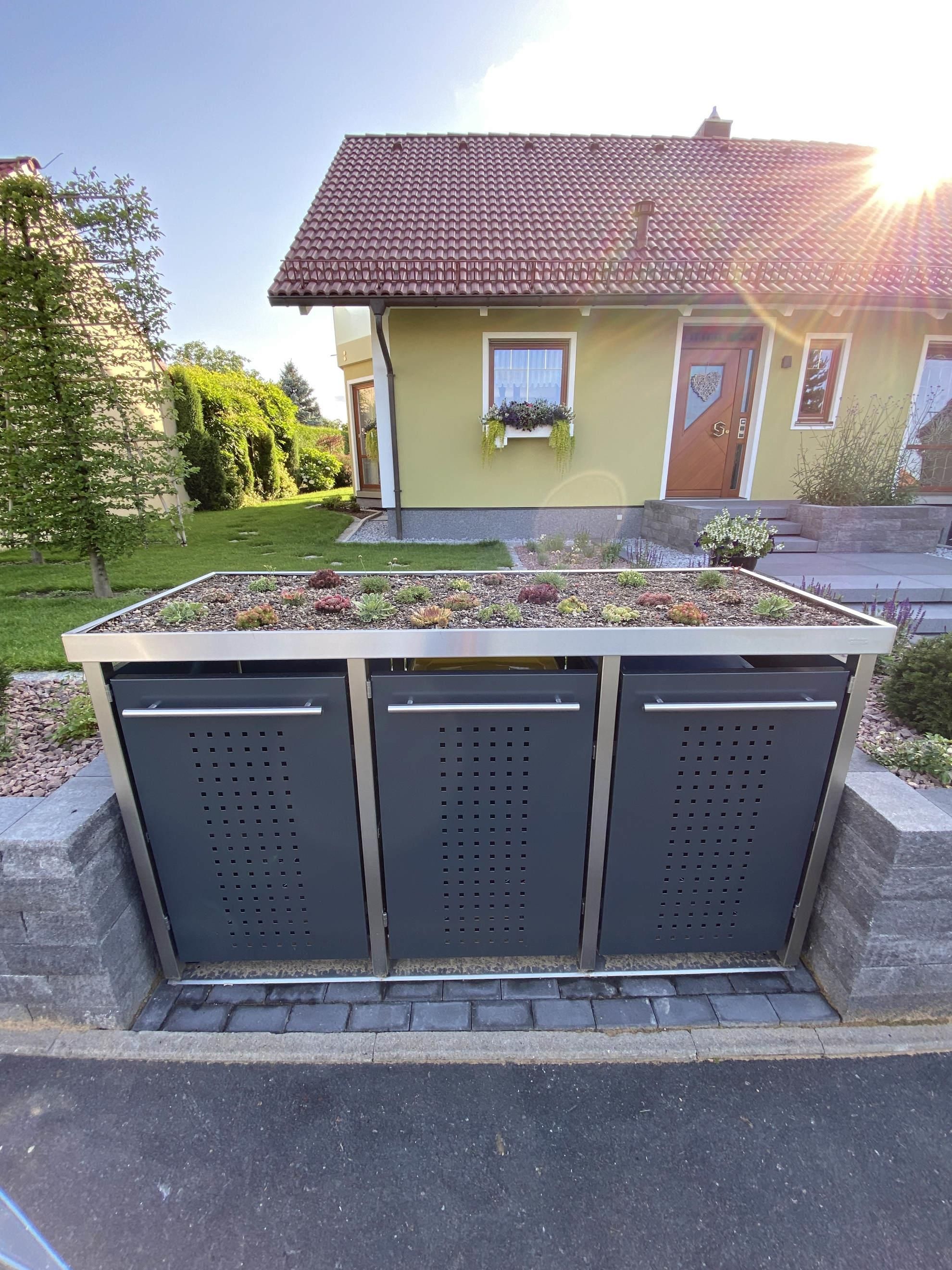 reinkeDESIGN | Mülltonnenhaus dreier 3x240L | Typ M | Begrün F-Design - Pflanzenw