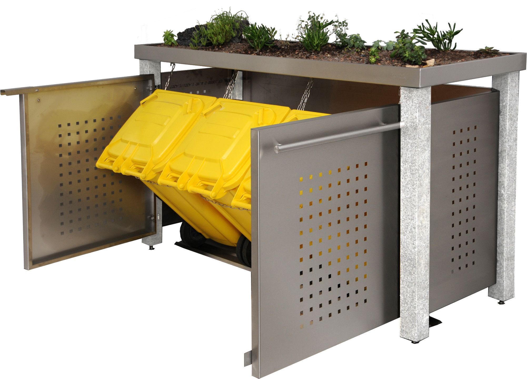 reinkeDESIGN | Mülltonnenhaus dreier 3x240L | Typ N | Grün-D F-Design - Edelstahl