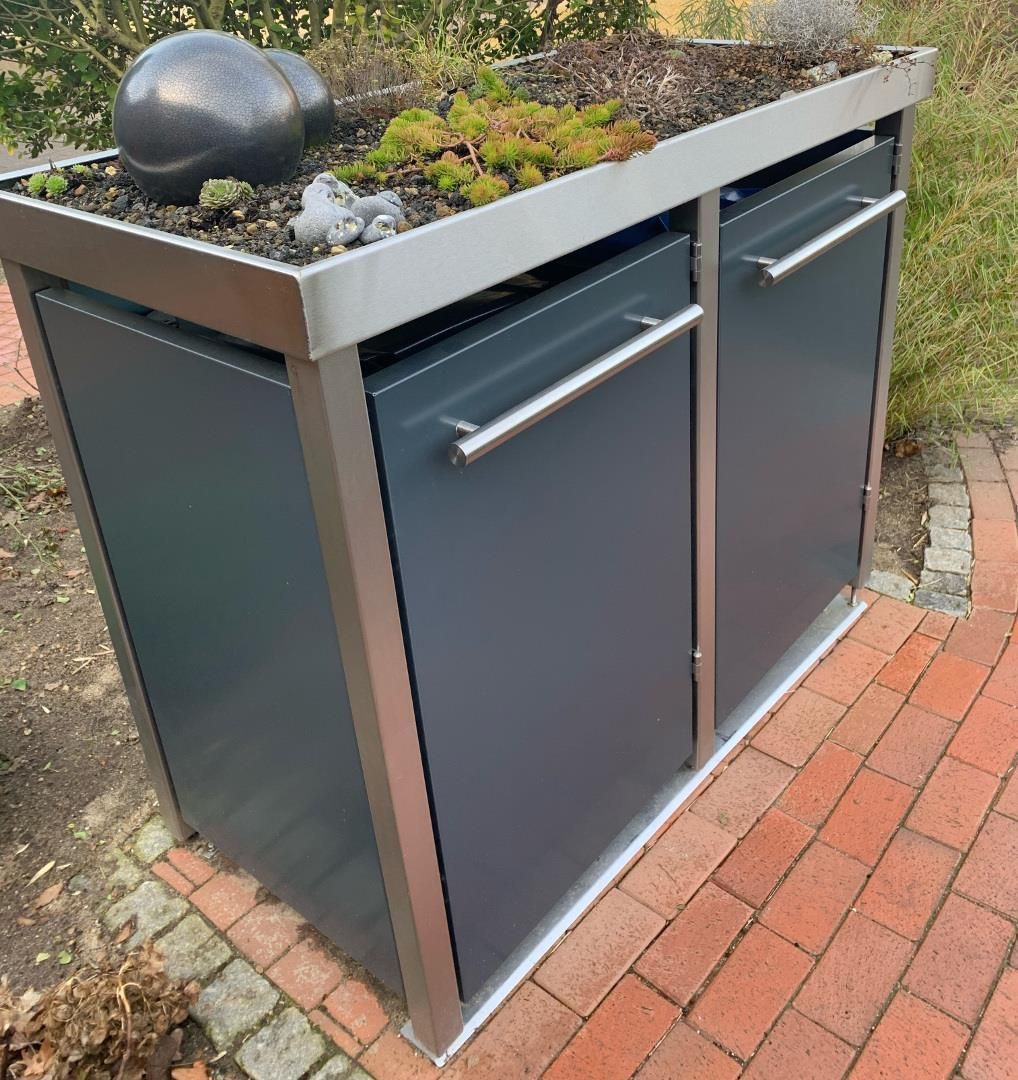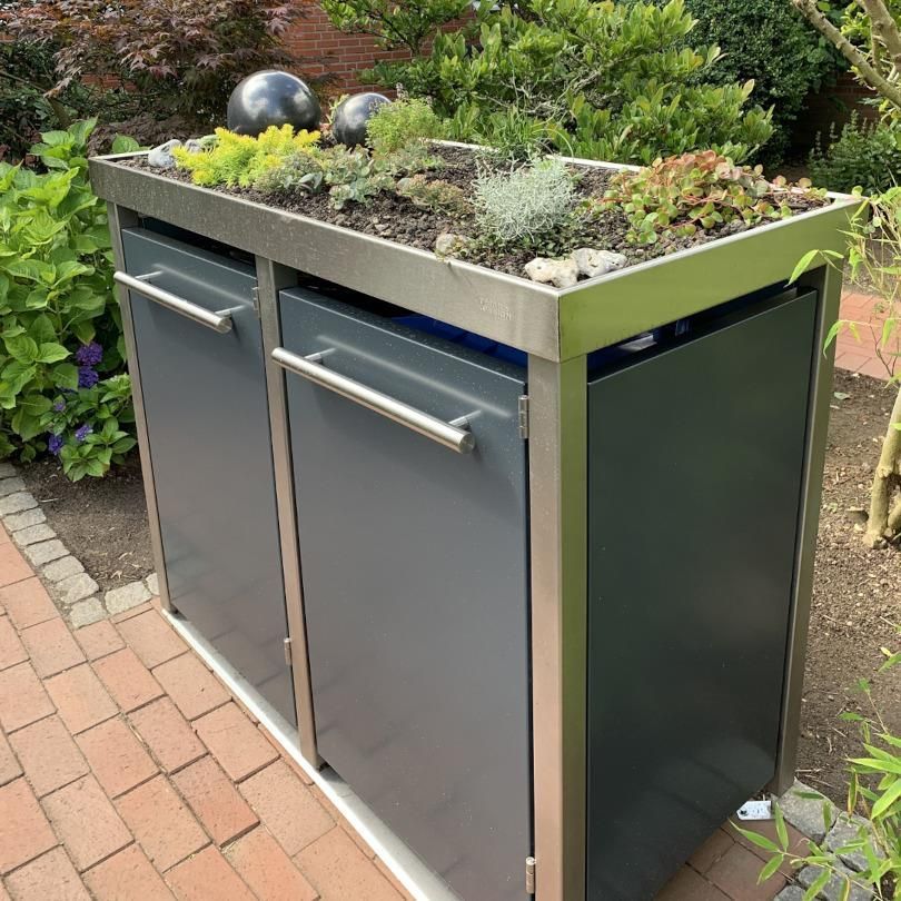 reinkeDESIGN | Mülltonnenverkleidung 2x120L | Typ M | mit Gr Pflanzenwanne - 2 x