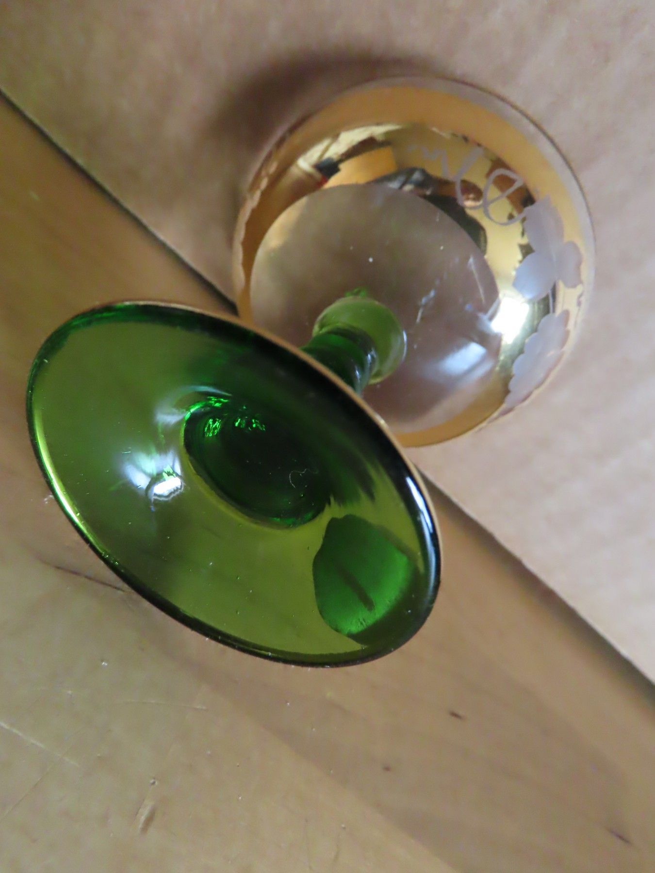 Reiseandenken mini Weinglas Likörglas Handgeschliffen Goldauflage Ediger/Mosel