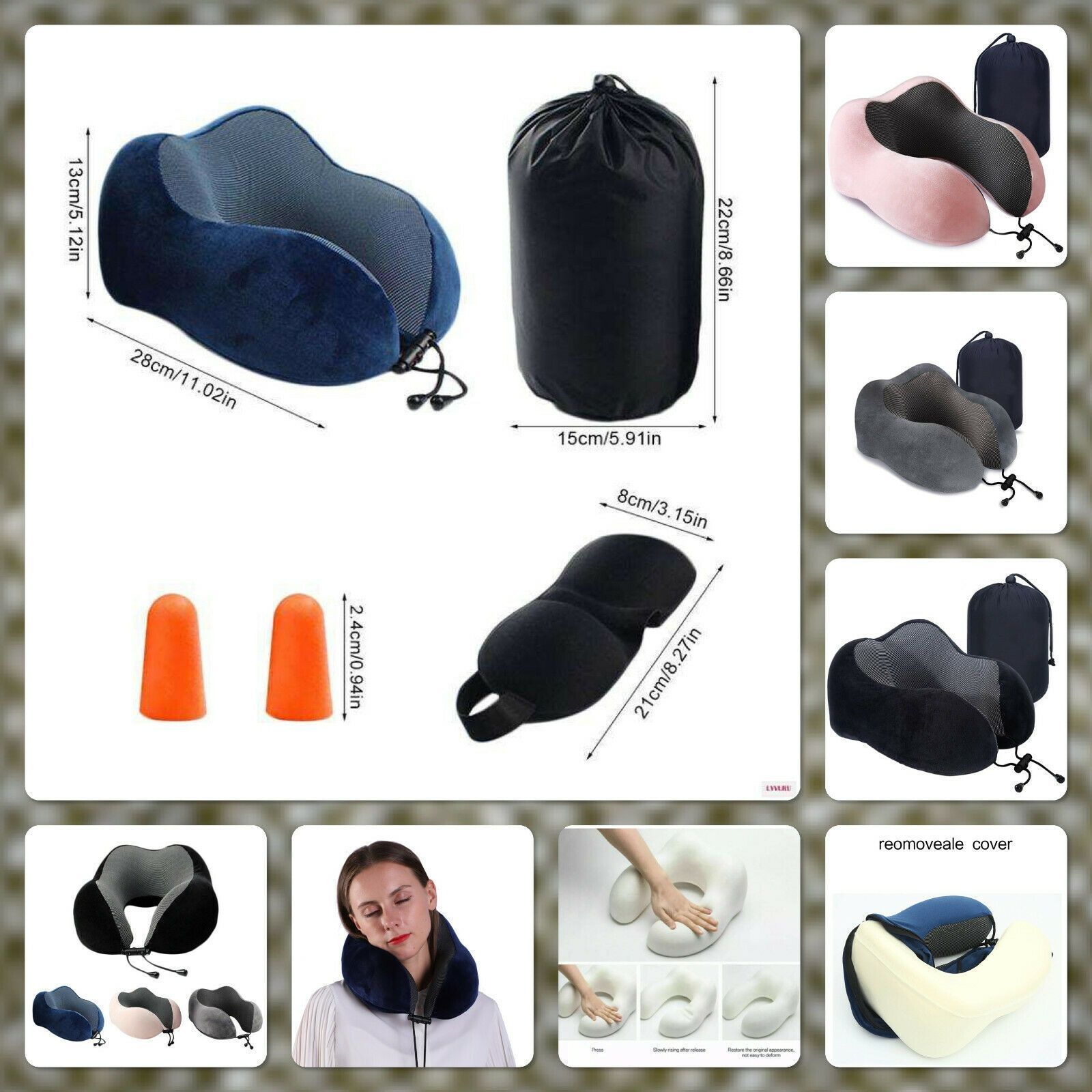 Reisekissen Nackenkissen Nackenrolle Deluxe Schlafmaske Ohrenstöpsel Set