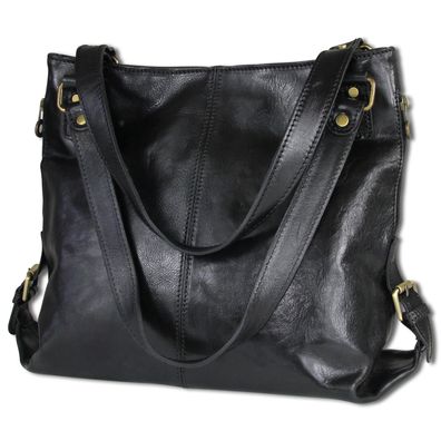 Toscanto Damen Schultertasche Cityrucksack Leder Tasche schwarz OTTM108SS
