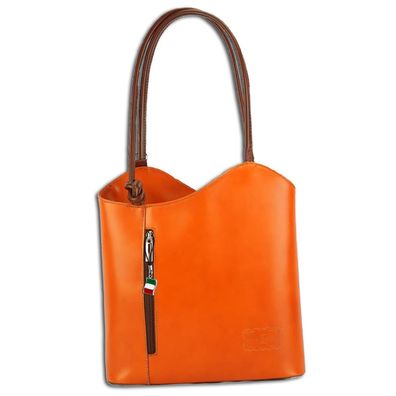 Florence 2in1 Echtleder Tasche Damen Schultertasche Rucksack orange OTF106O