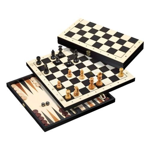 Reisespiel - Schach - Backgammon - Dame - mit Randbeschriftung