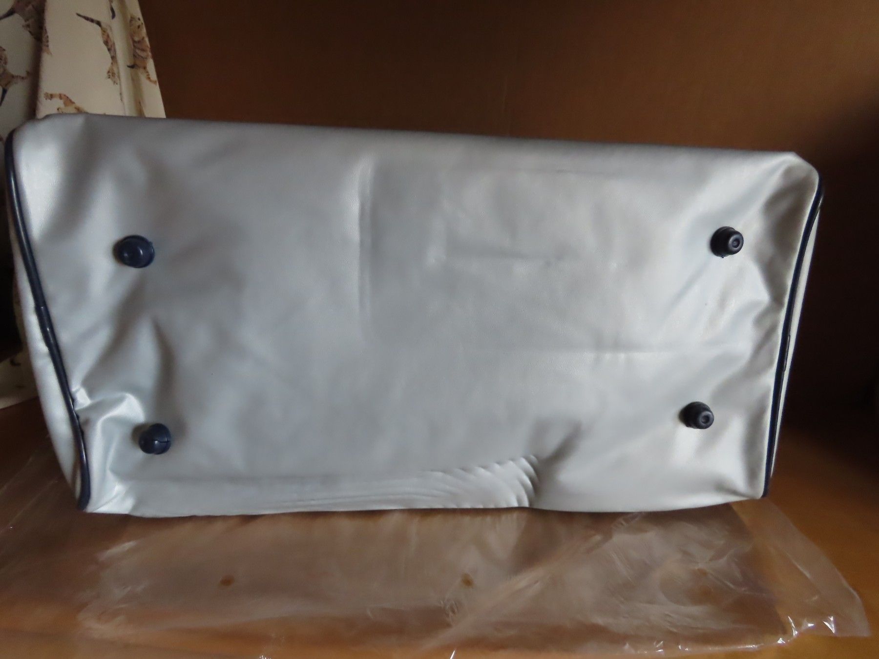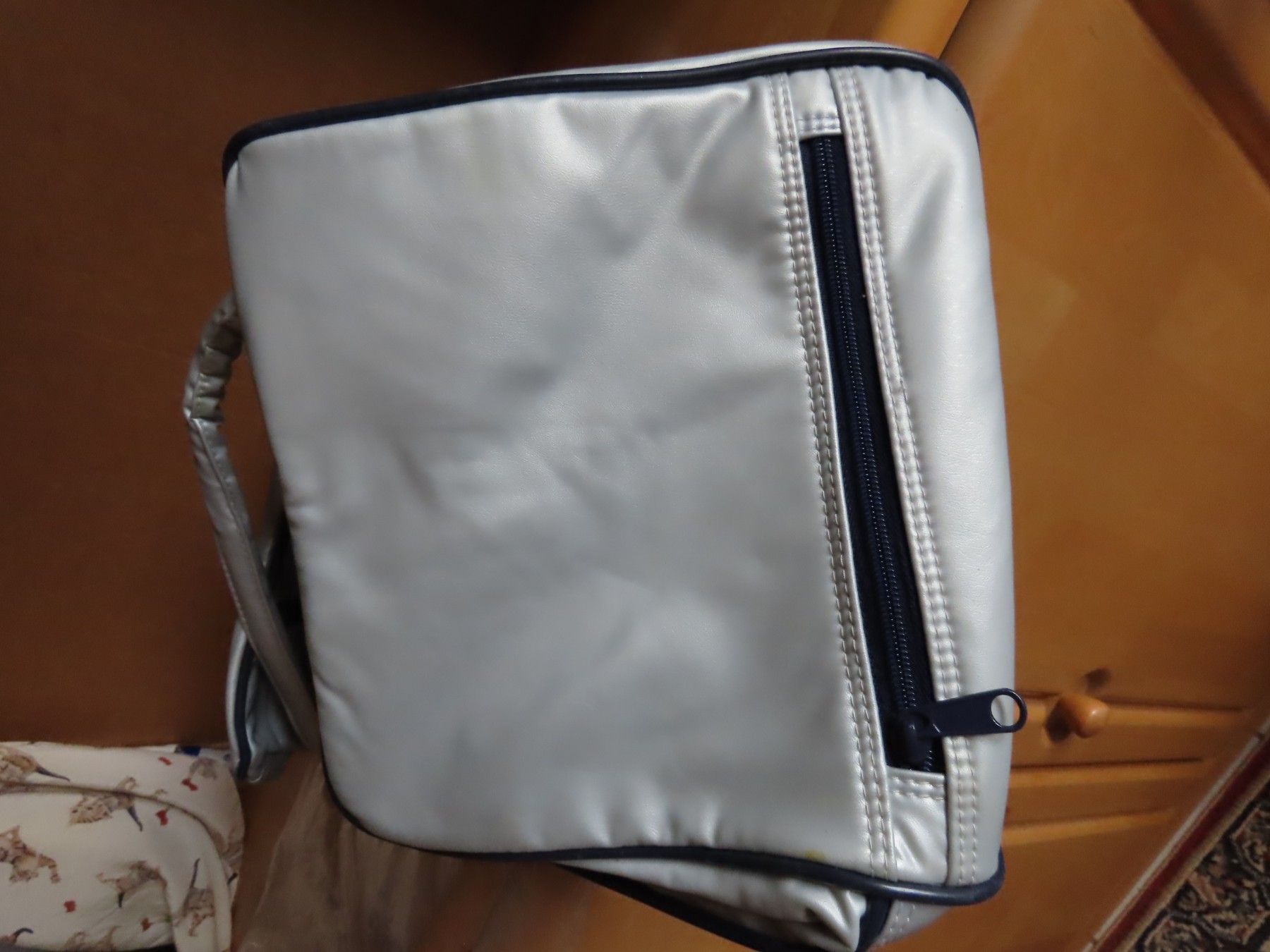 Maße: ca. 23 cm hoch x ca. 47 cm x ca.20 cm ---Griffe habe ich NICHT gemessen 3 Reißverschlüsse außen 1 Reißverschluß innen Material: EuroEuroEuroEuro ist leicht verschmutzt verstaubt,an der Innentasche sind Verfärbungen, eine der Standfüße hat einen Riss