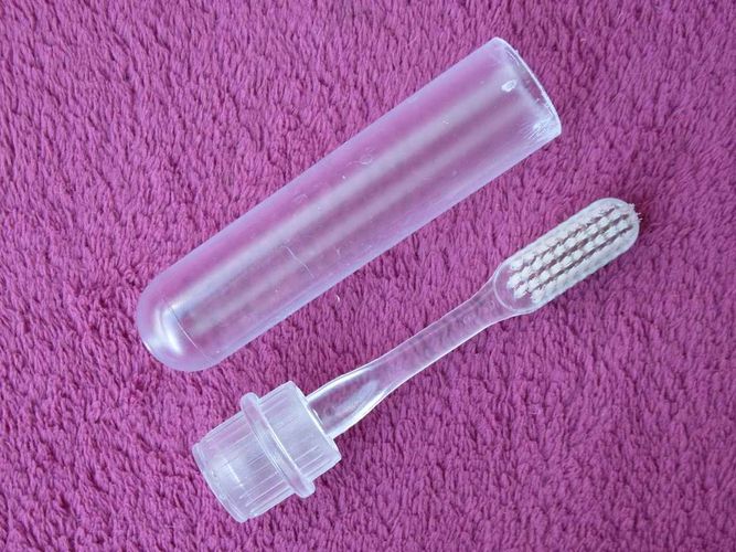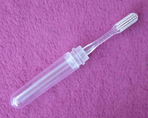 N E U praktische Reisezahnbüste im Köcher Der Köcher dient gleichzeitig als Griff! Farbe: transparent Länge: 10 cm (zusammengeklappt) Privatverkauf - keine Rückgabe, Umtausch oder Erstattung!