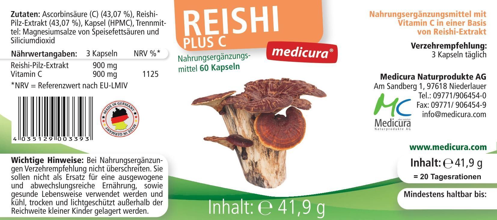 Medicura Reishi Plus C - 60 Kapseln