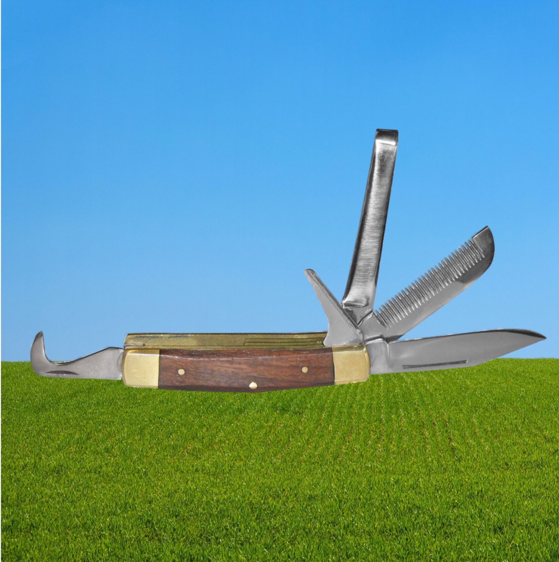 Reiter-Taschenmesser mit Holzgriff, Kerbl Reitermesser, Multi-Tool, Hufwerkzeug